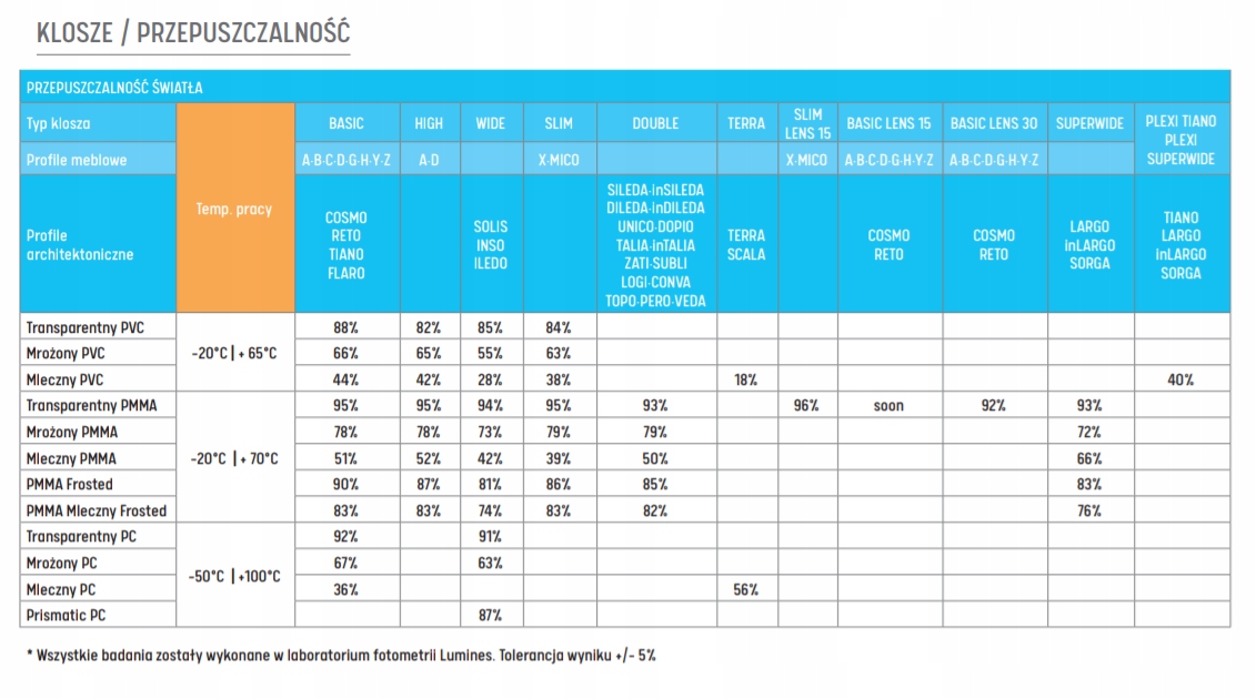 Shade 1m Основные люмины PMMA для профиля A, B, C, D, G, H, Y, Z, x