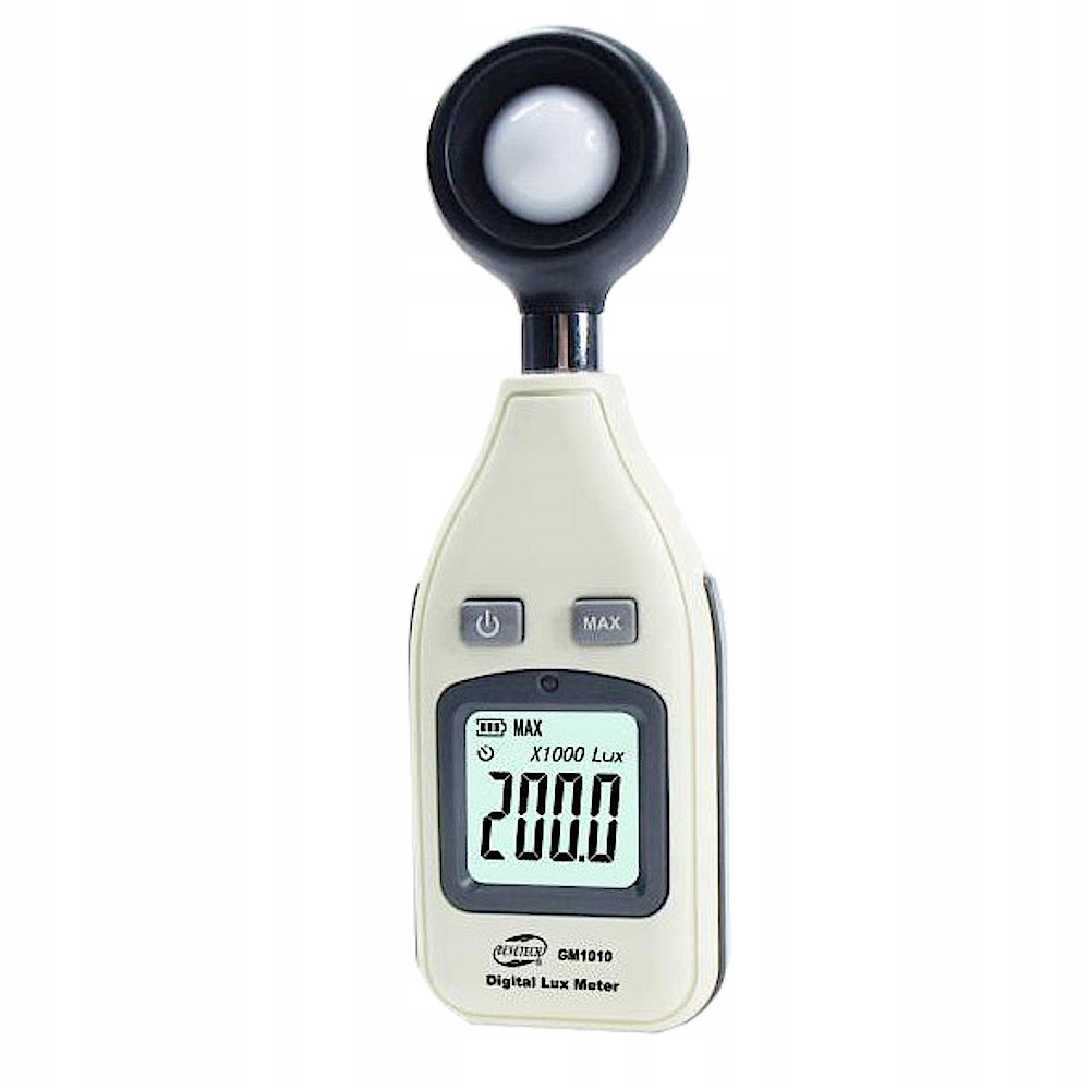 Lux Meter GM1010 с диапазоном 0-200 000 Lux -это устройство для измерения интенсивности света. Измеритель имеет освещенный дисплей и функцию автоматического измерения. Он также характеризуется коротким временем отбора проб. Через пять минут бездействия измеритель люкс отключается автоматически.