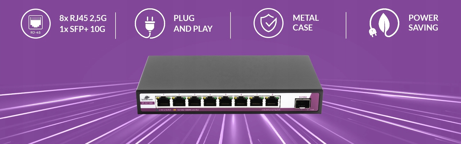 SWITCH 5 портів RJ45, надшвидкий 2.5G, 1x SFP-порт Spacetronik SP-SGR105S