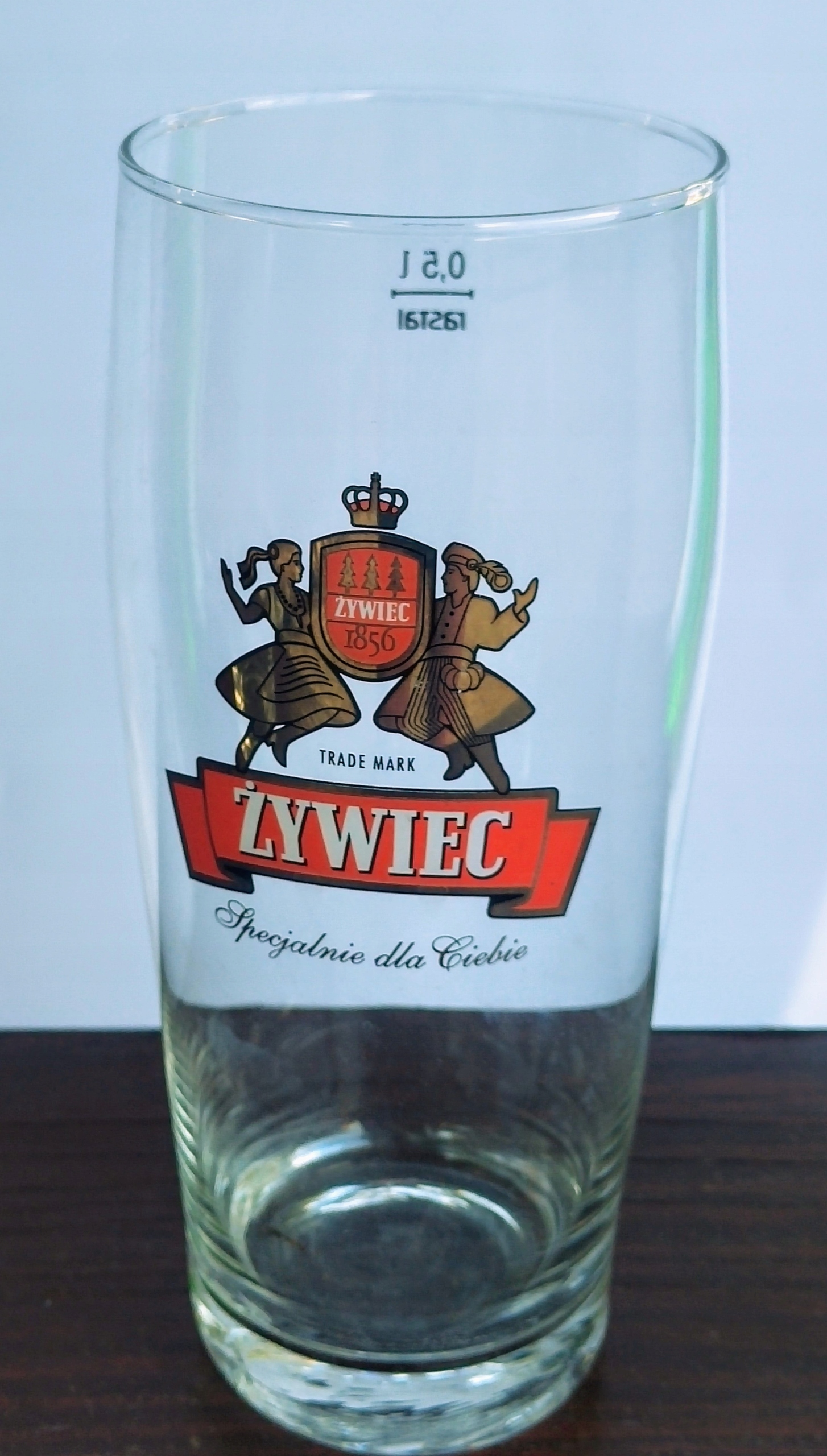 szklanka ŻYWIEC, 0,5L , rastal , złote logo, złote choinki