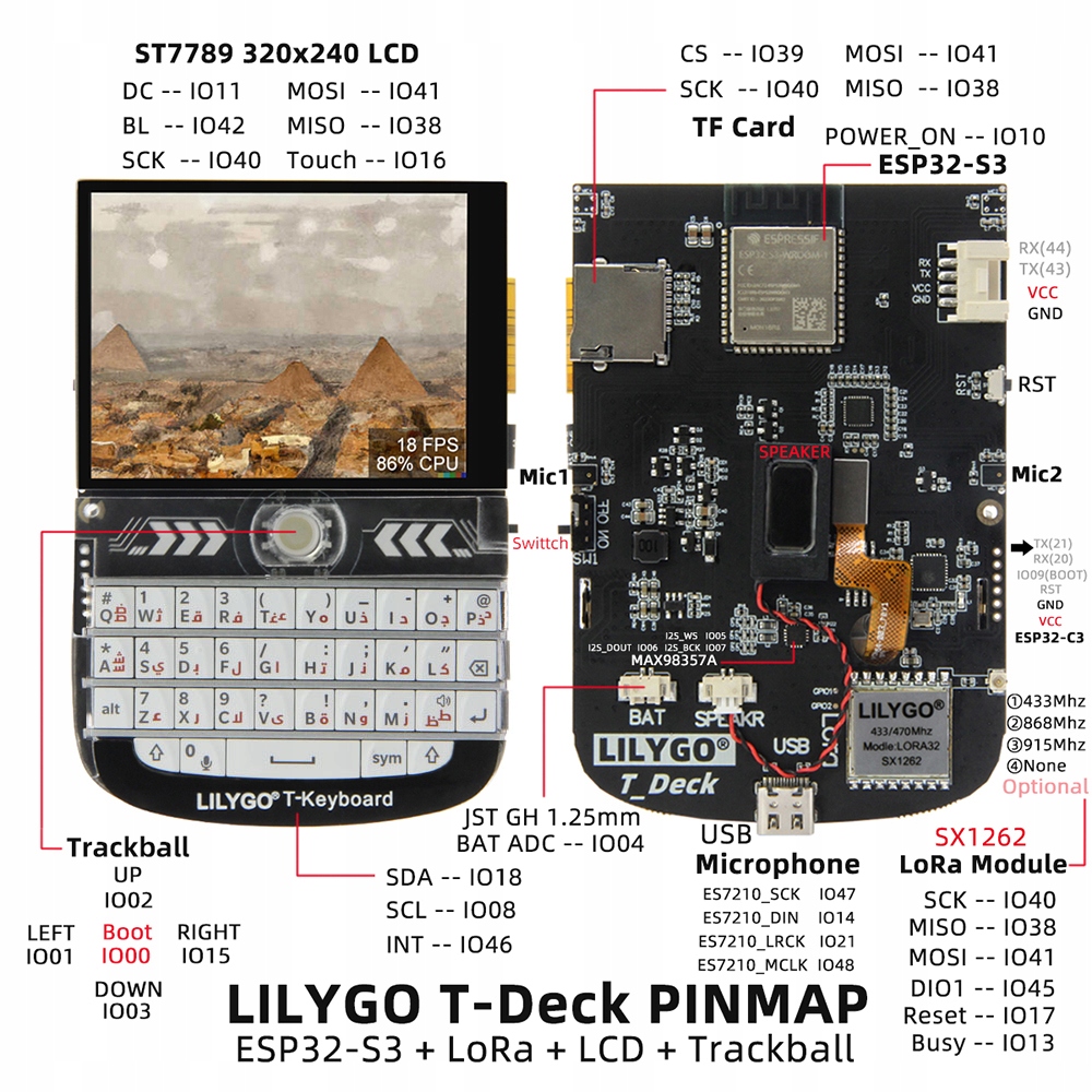 T-Deck ESP32-S3 LORA 915 МГц Пластина разработчика с 2,8-дюймовым ЖК-дисплеем