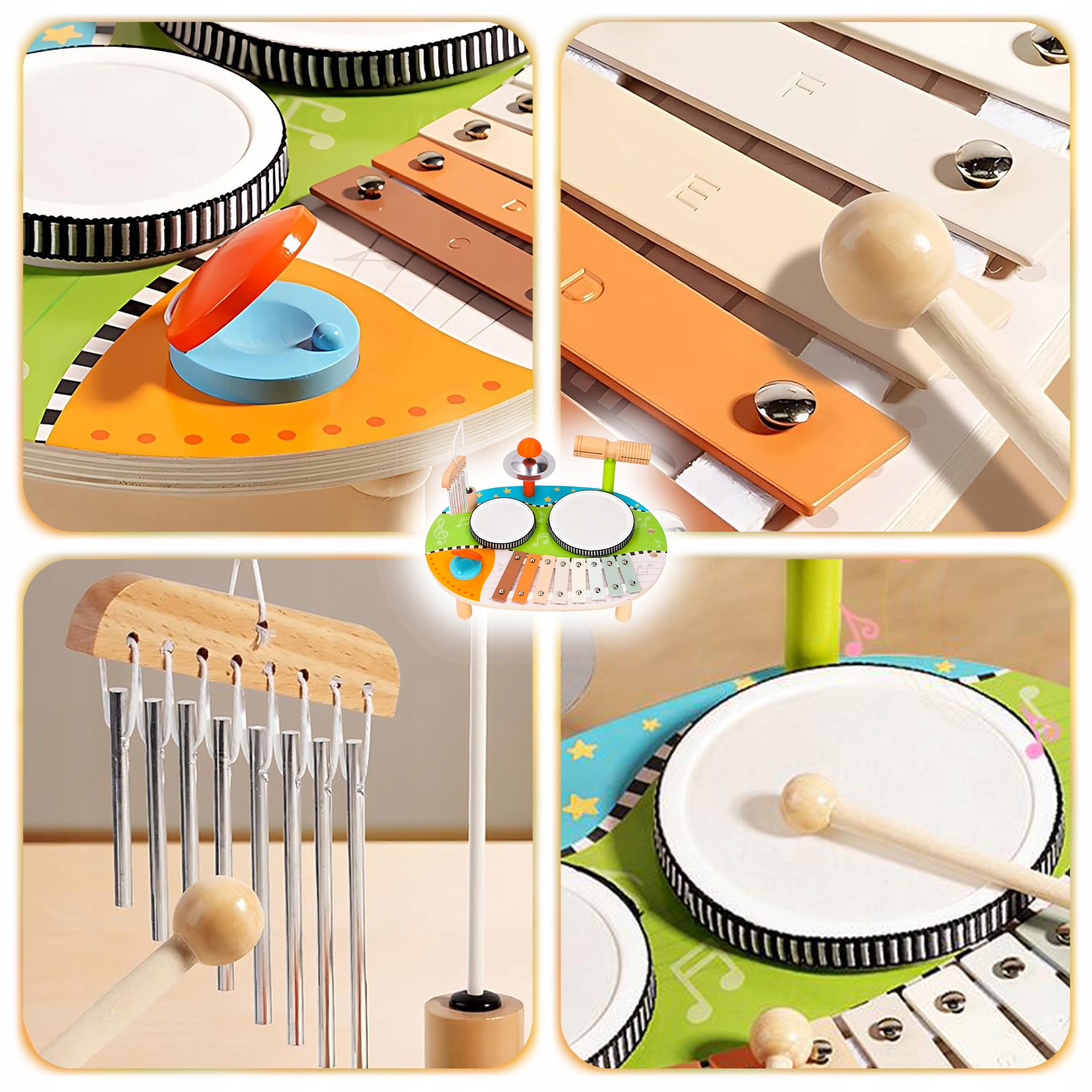 деревянная образовательная музыка таблица 7in1 Montessori 12m+ тарелки барабана h1>