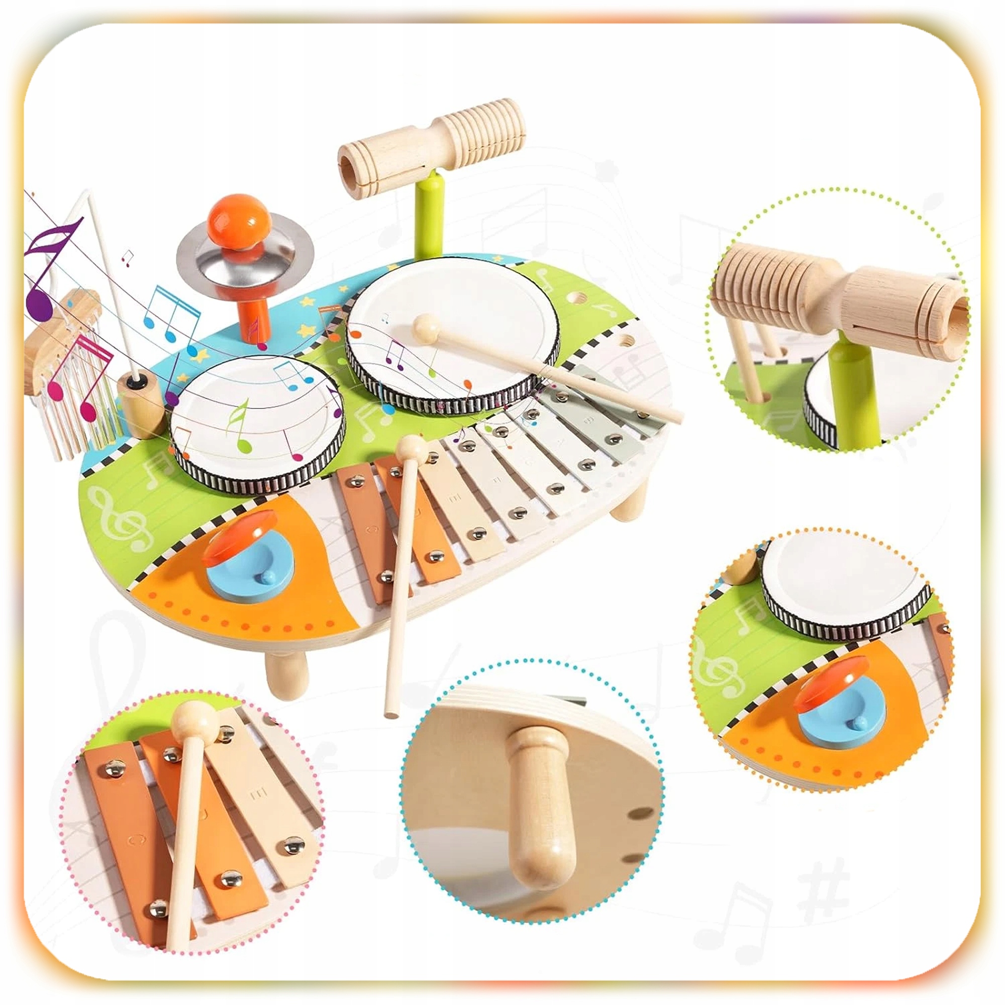 Наша деревянная музыкальная таблица - это образовательная игрушка, которая развивает творчество, координацию и чувство ритма - и в то же время дает очень веселье. Благодаря различным инструментам, малыш может создавать свои собственные мелодии, играть со звуком и научить мир музыки безопасным и привлекательным способом.