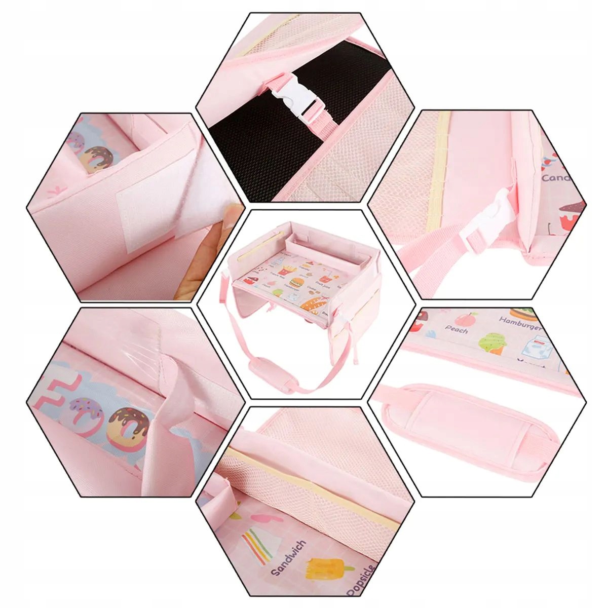 - Многофункциональный дизайн: Стол для путешествий был оснащен просторной поверхностью, идеально подходит для рисования, раскраски, игры или еды закусок. Дополнительные боковые карманы позволяют хранить необходимые мелочи, такие как карандаши, игрушки или носовые платки.