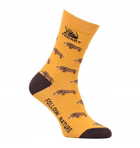 Комплект летних носков с охотничьим мотивом. Носки медового цвета с рисунком кабана и зеленые носки с рисунком козла, известные по логотипу бренда Tagart. Они упакованы в декоративную коробку, что делает их идеальным подарком.