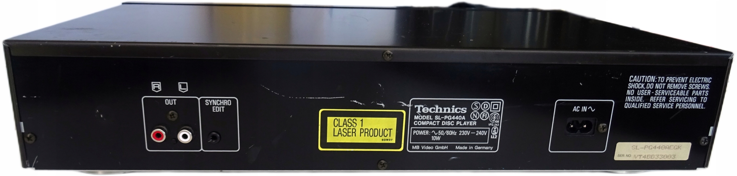 Еще одна возможность для ценителей звука, а не идеальный вид! Я продаю второй технически полностью функциональный CD Technics SL-PG440A . Эта копия, в дополнение к царапинам на корпусе, отличается от отсутствия логотипа «техники» спереди. В свою очередь, он предлагает тот же легендарный и ценный звук преобразователя MASH по чрезвычайно низкой цене.