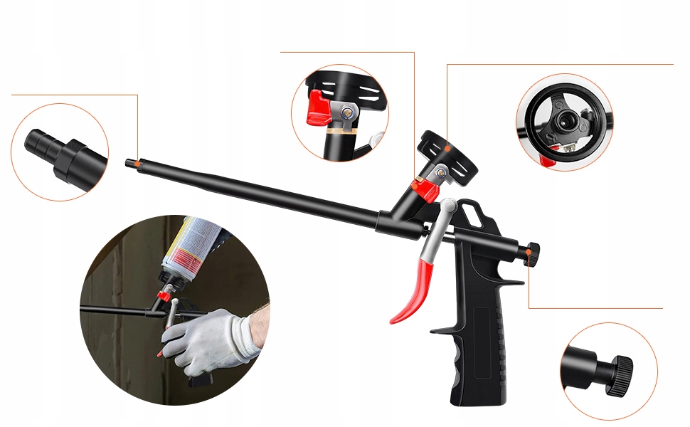 Тефлоновый пистолет для монтажа пены с эргономичными сопластами клапана 2