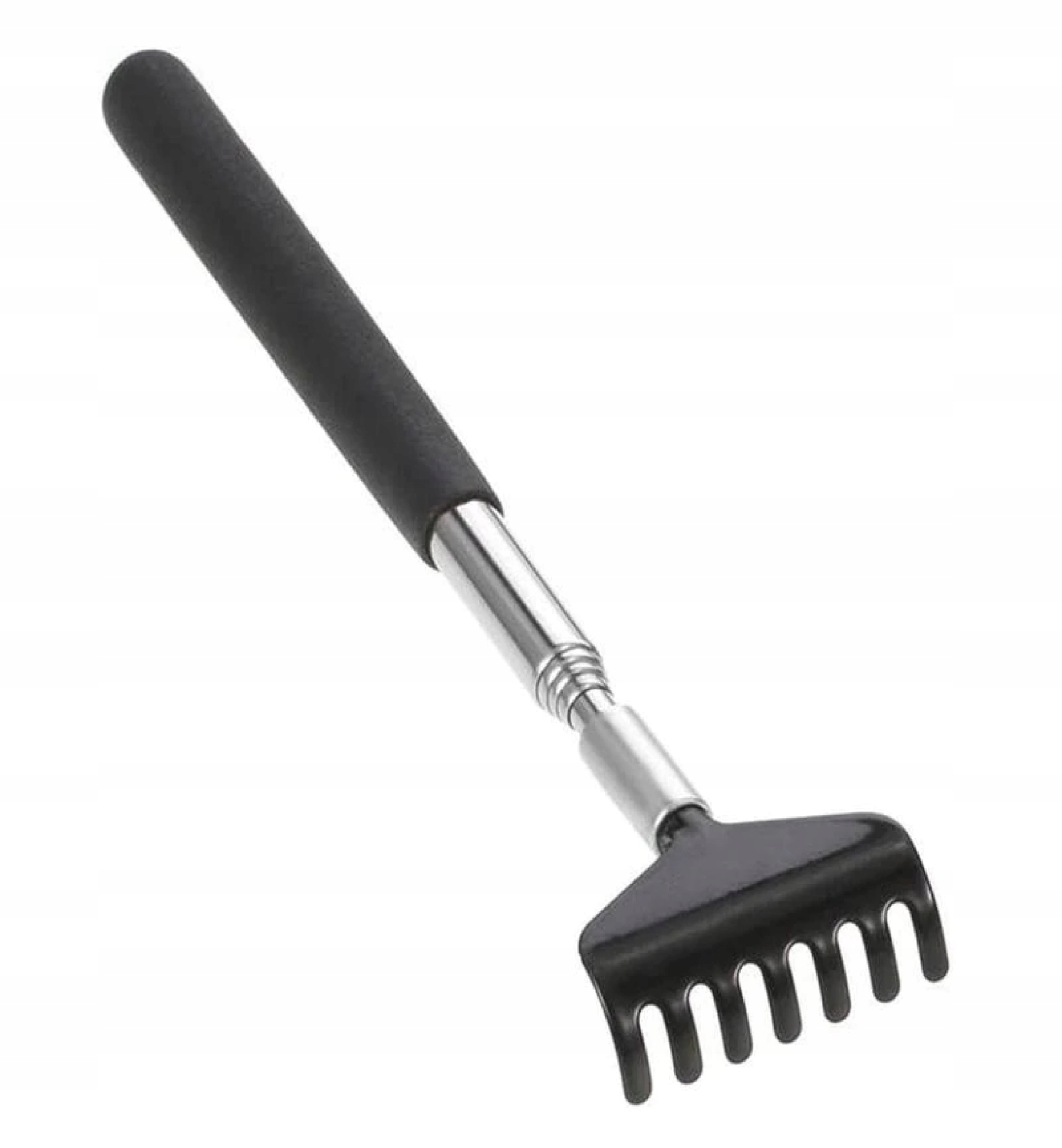 Цельнометаллический скребок с возможностью регулировки длины. Телескопический вал увеличивает радиус действия независимо от вашей гибкости. Полезный гаджет, когда чешется спина в местах, до которых невозможно дотянуться рукой. В сложенном виде когтеточка занимает мало места. Она имеет резиновую ручку, благодаря которой ее легче держать. Оригинальная идея подарка. Безопасно как для взрослых, так и для детей.