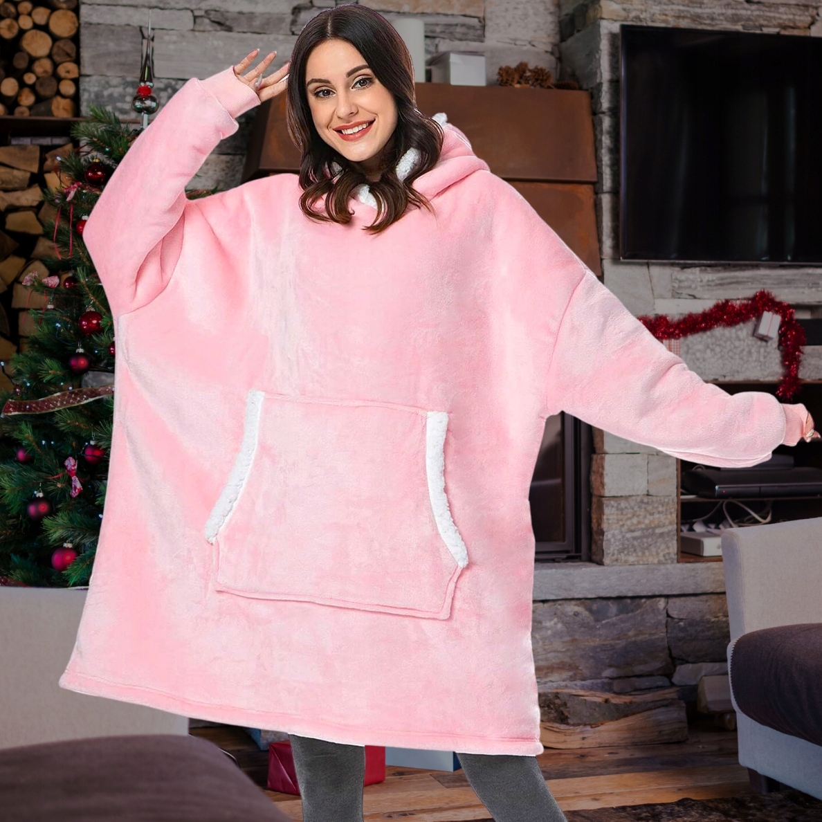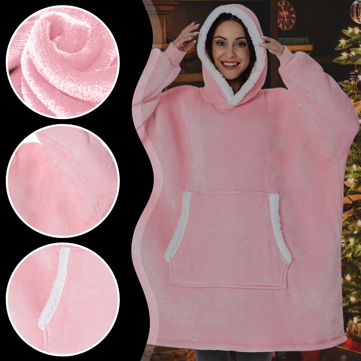 теплая толстовка Kocoblusa xxl Негабаритное одеяло 2in1 Толстый мех с капотом h1>