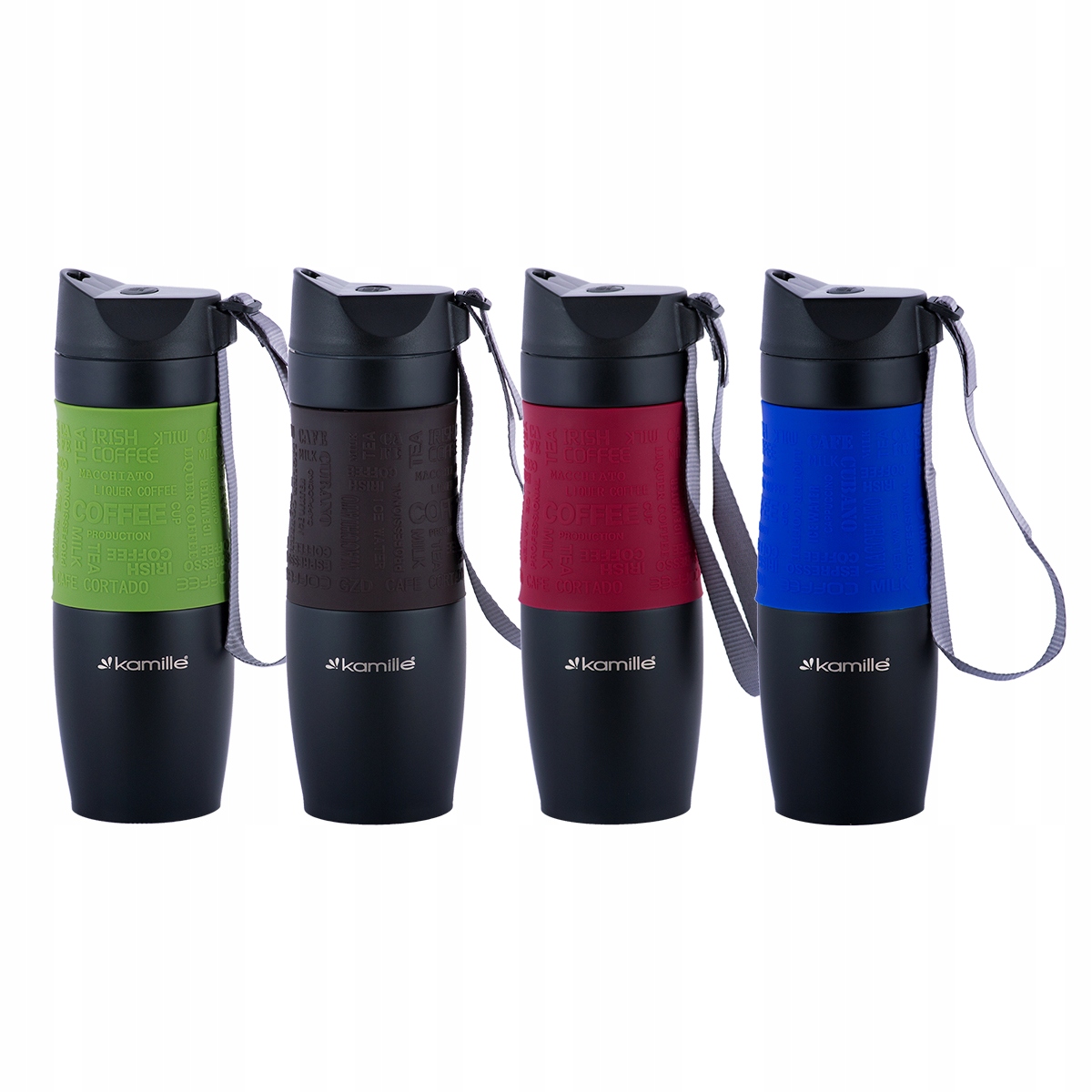 Термокружка 480 мл из нержавеющей стали с противоскользящим покрытием и ремешком KAMILLE KM-2067