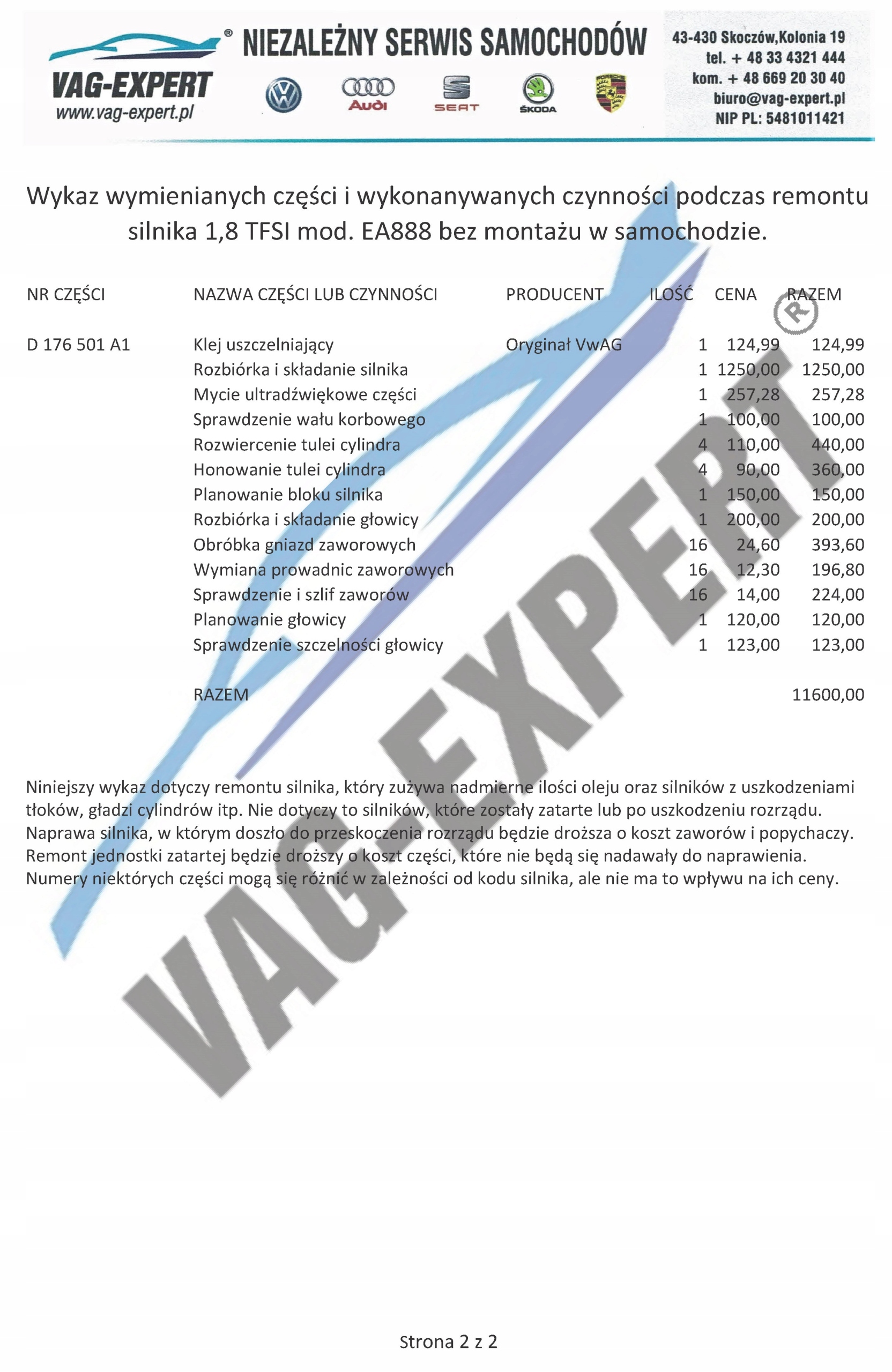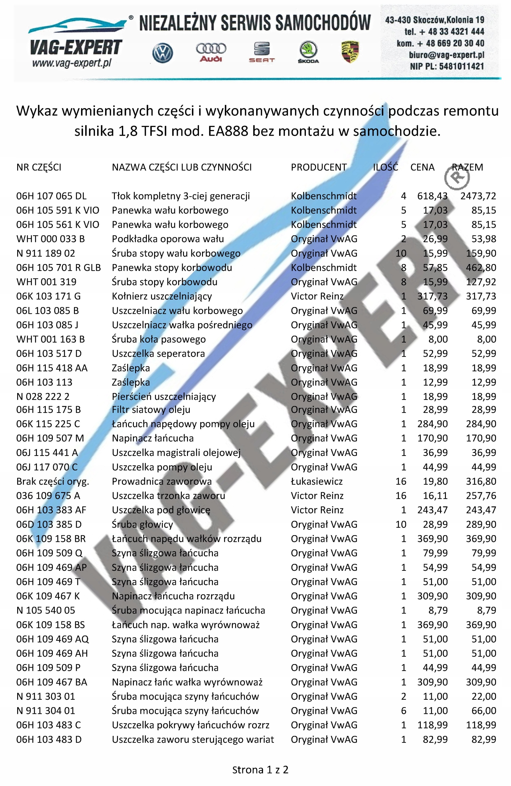 Стоимость всех деталей, которые мы заменяем составляет 7785,32 злотых.