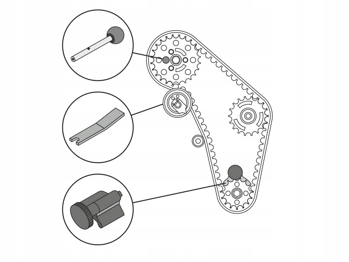 Набор позволяет иммобилизацию синхронизионных передач в положении обслуживания при замене ремня ГРМ.