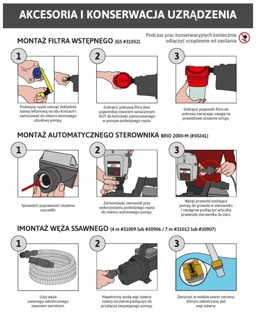 Электронные системы управления обеспечивают правильную работу насоса в зависимости от давления и расхода воды. Система управления BRIO 2000 M автоматически запускает насос при открытии водяного клапана или достижении минимального давления. Когда забор воды закончен, насос отключается. Рабочее давление можно свободно регулировать. Индикатор в манометре сообщает нам о текущем рабочем давлении насоса. Контроллер BRIO также защищает насос от повреждений, вызванных работой всухую или при низком давлении. Электронная система управления обеспечивает повышенную функциональность по сравнению с самим садовым насосом.