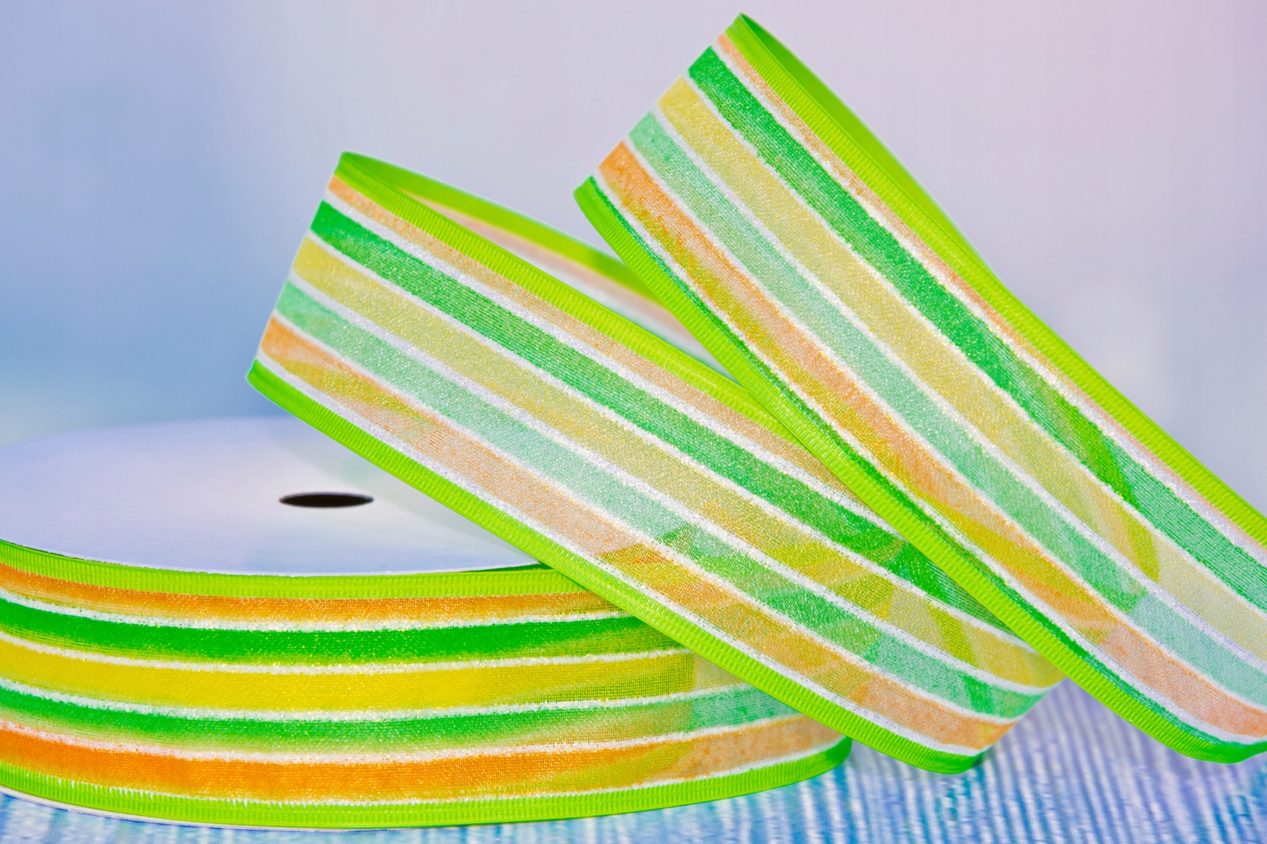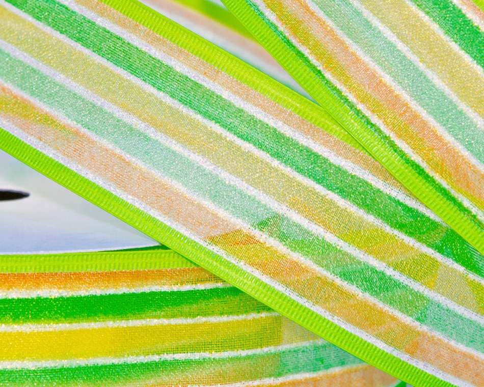 ЛЕНТА ИЗ ПРОВОЛОКИ С РАДУЖНЫМ УЗОРОМ отлично подходит для создания украшений на различные случаи жизни, используется для оформления витрин и банкетных залов, для украшения столов и стульев, для обертывания подарки, украшение горшков, ваз, банок, венков, формы из пенопласта (яйца, пончики, елки...), цветочные композиции, поздравительные открытки и все проекты, сделанные своими руками.