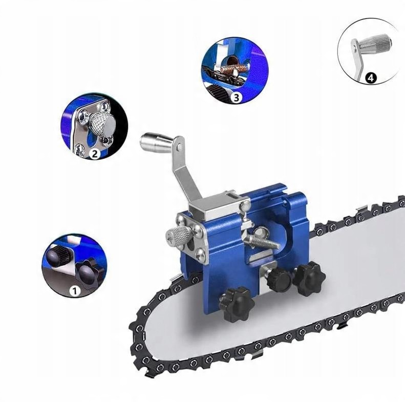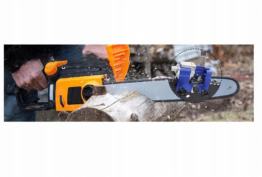 Точилка прикреплена к к цепи с помощью регулируемых винтов. Эта точилка для бензопил подходит для большинства бензопил диаметром 8–20 дюймов, доступных на рынке.