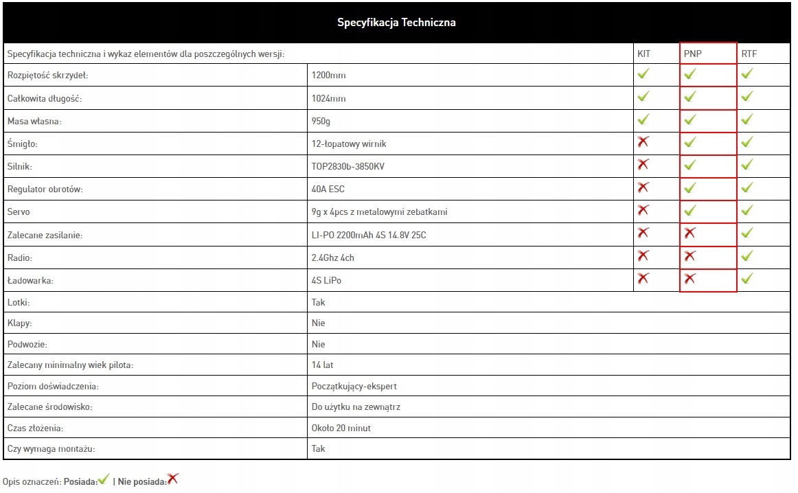 План в версии PNP, в комплект входит модель, двигатель, регулятор и сервоприводы. Вы должны приобрести аккумулятор, зарядное устройство, передатчик и приемник самостоятельно.