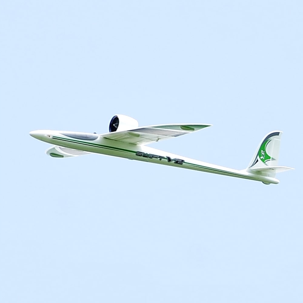 TopRcHobby Swift Pro V2 1200 — сверхбыстрый турбинный планер в мини-формате. Оснащенный двигателем EDF развивает скорость до 160 км/ч. Благодаря простой и гладкой форме и тонкому корпусу он уменьшит сопротивление при полете на высокой скорости, что подарит вам наилучшие впечатления от полета. Профилированный 8,5% NACA 009. Имеет съемные половины крыла и хвоста, прост в установке. Благодаря отличной конструкции отверстий для отвода тепла двигатель, ESC и аккумулятор будут хорошо охлаждаться во время высокоскоростного полета. Подъемная сила вертикальная, а свойства скольжения превосходны для пенопластовой модели. Полностью изготовлен из прочной пены EPO. Оснащен карбоновыми трубками для усиления крыльев. Идеальная модель для начинающих и продвинутых пилотов.
