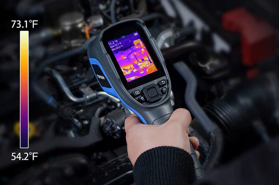 Теплоизображение на фото. Благодаря расширенной технологии улучшения изображений, TISR увеличивает разрешение с 128x128 до 240x240, обеспечивая четкие, подробные тепловые изображения. Свет и пользовательский дружелюбный, даже позволяет новичкам быстро и точно определять проблемы с легкостью. Идеально подходит для диагностики проблем с кондиционером, перегрев компонентов, электрические разломы или утечки.