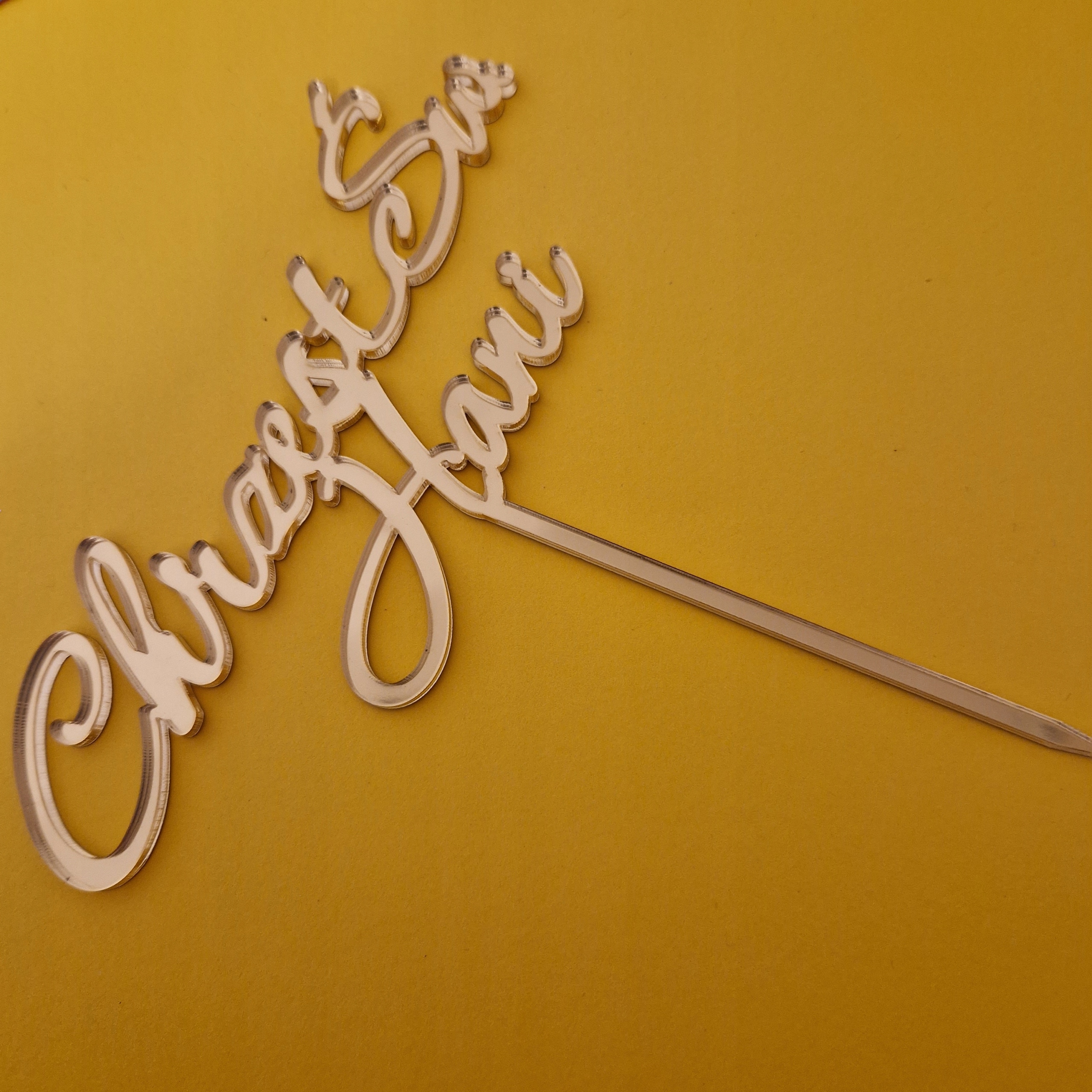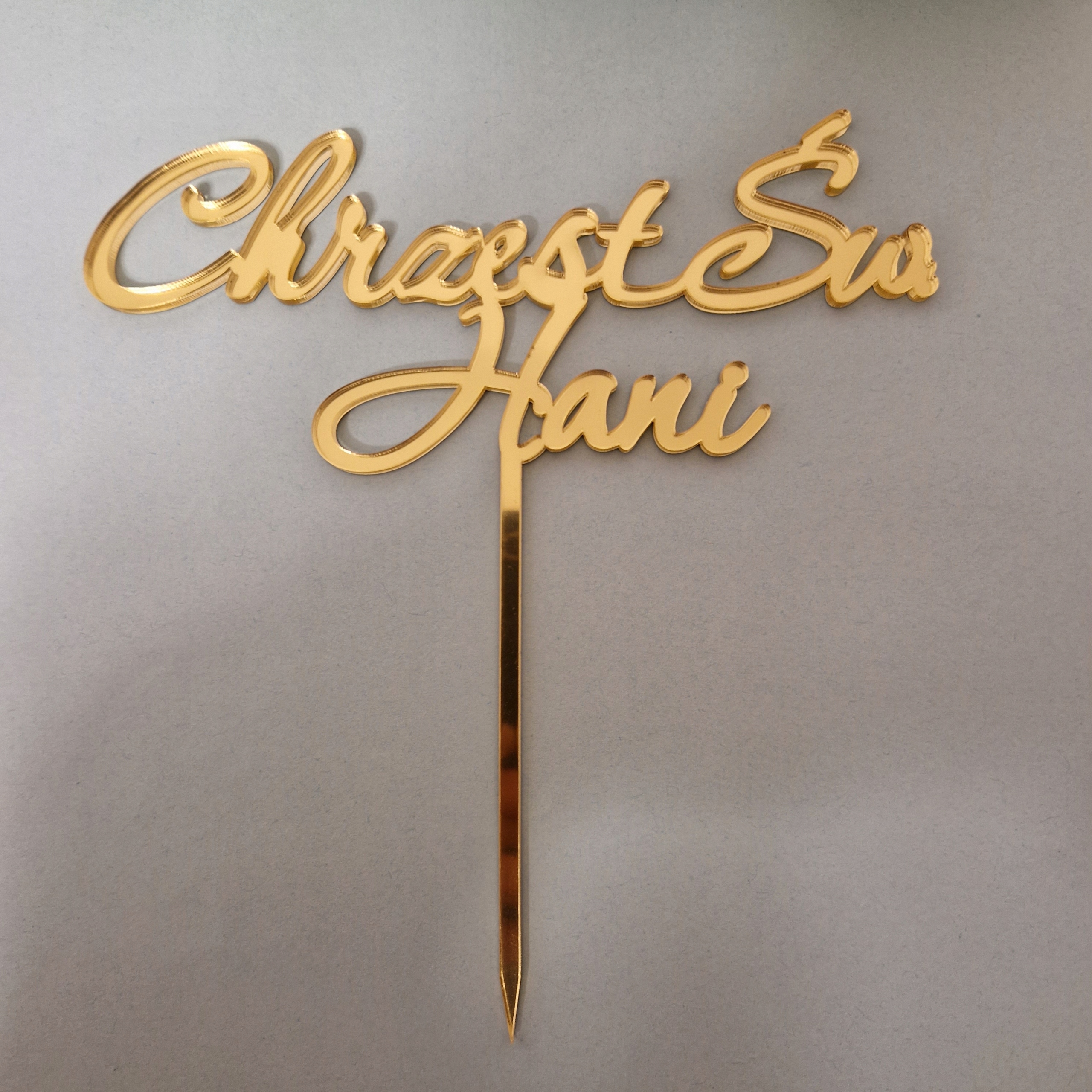 Именный топпер для торта, надпись «Святое Крещение». +имя - золотое зеркало.
