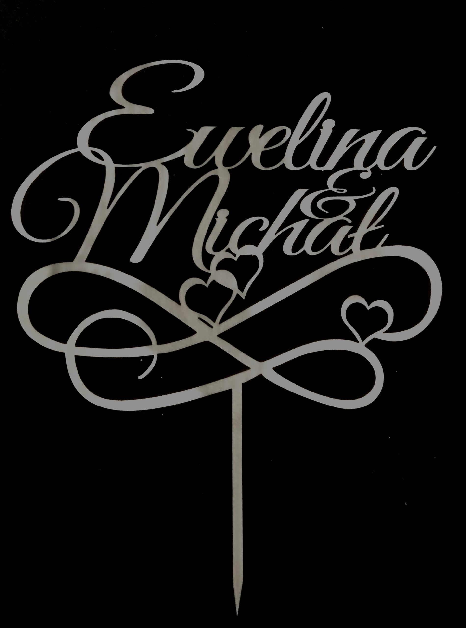 В сообщении продавцу при оформлении заказа укажите ИМЯ которые должны быть размещены на топпере, например Эвелина и Михал