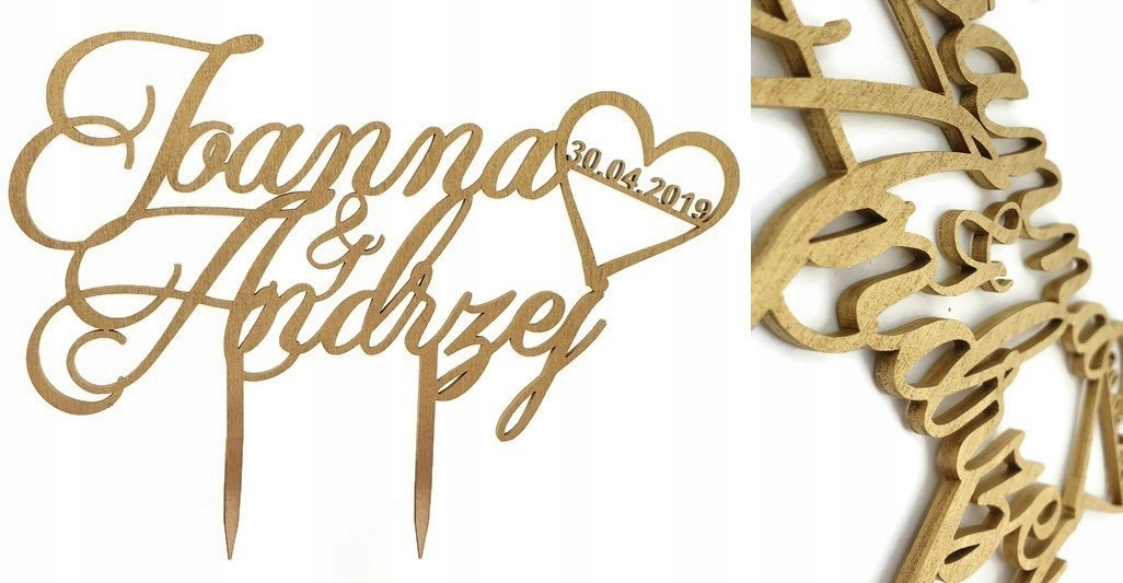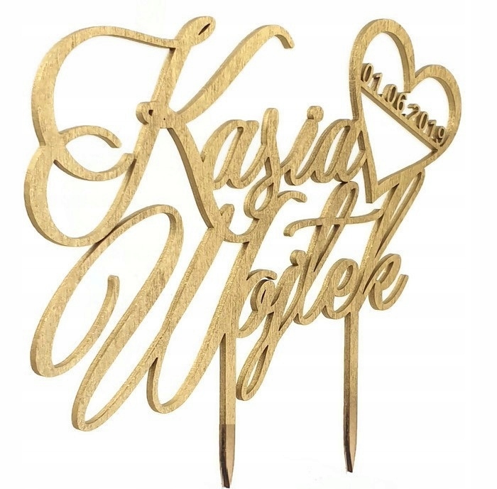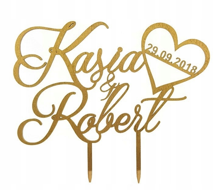 Топпер для торта с именами и датой, золотой мат 5b-здоровый
