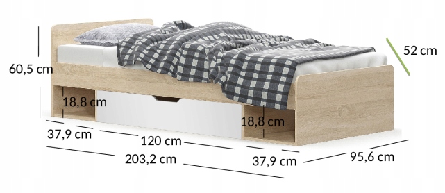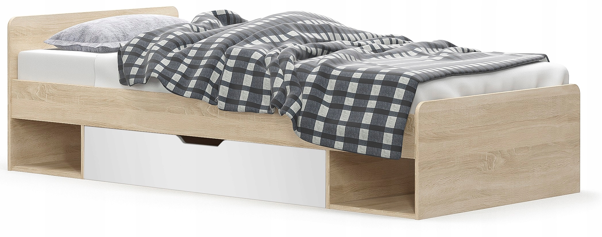 Сильная рама советы кровати дадут вам спокойный и безопасный сон, и появление Коллекции TIPS понравится вам каждому пользователю. Мебель оснащена ящиком и двух камер, , которые можно использовать для хранения одежды, книг или игрушек. кровать доступен в двух цветовых комбинациях : дуб Sonoma с белыми фронтами и дубом Sonoma (доступно на наших других аукционах). :