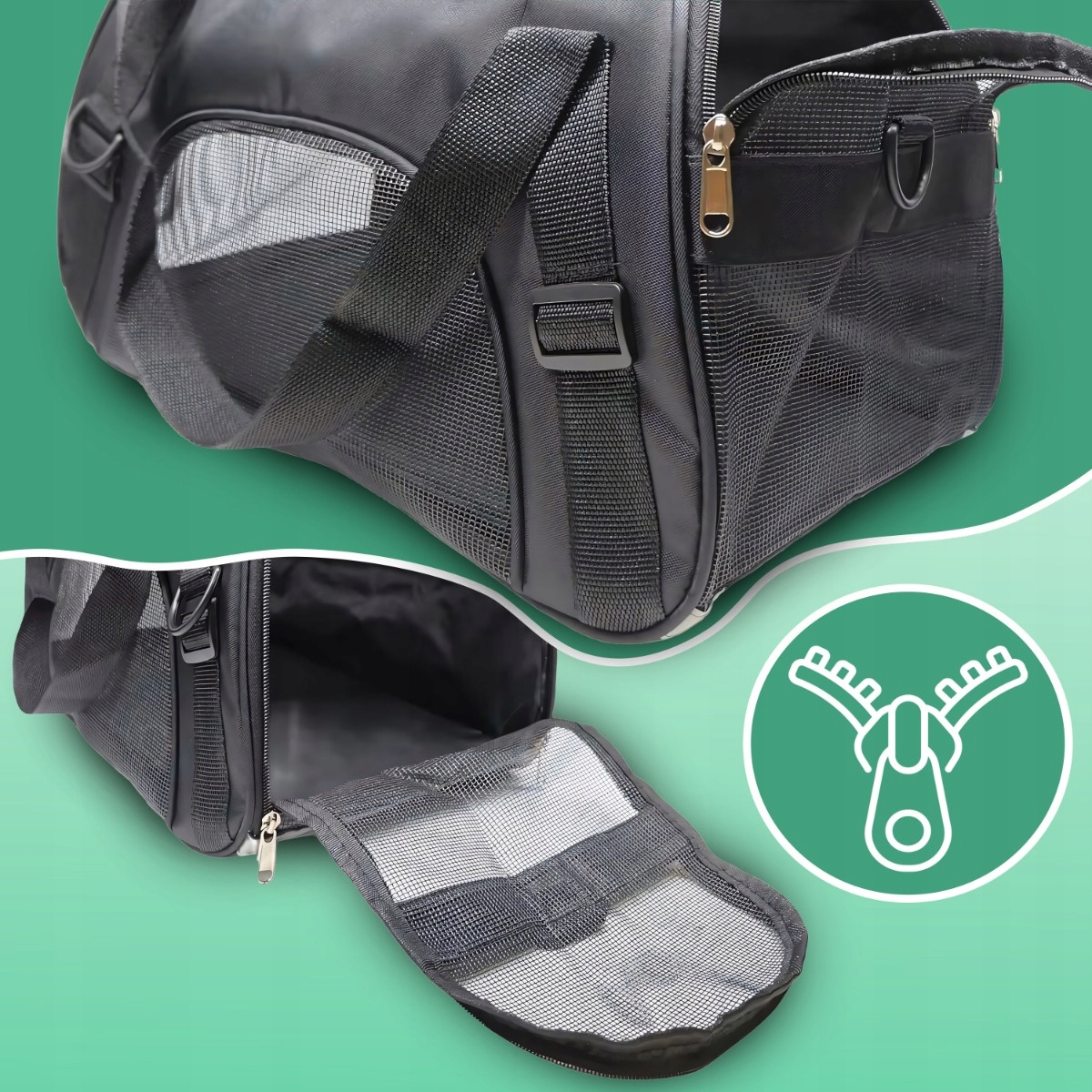 Переноска обеспечивает полную безопасность вашего питомца во время путешествия благодаря прочной конструкции и надежному закрытию, предотвращающему случайное открытие сумки.