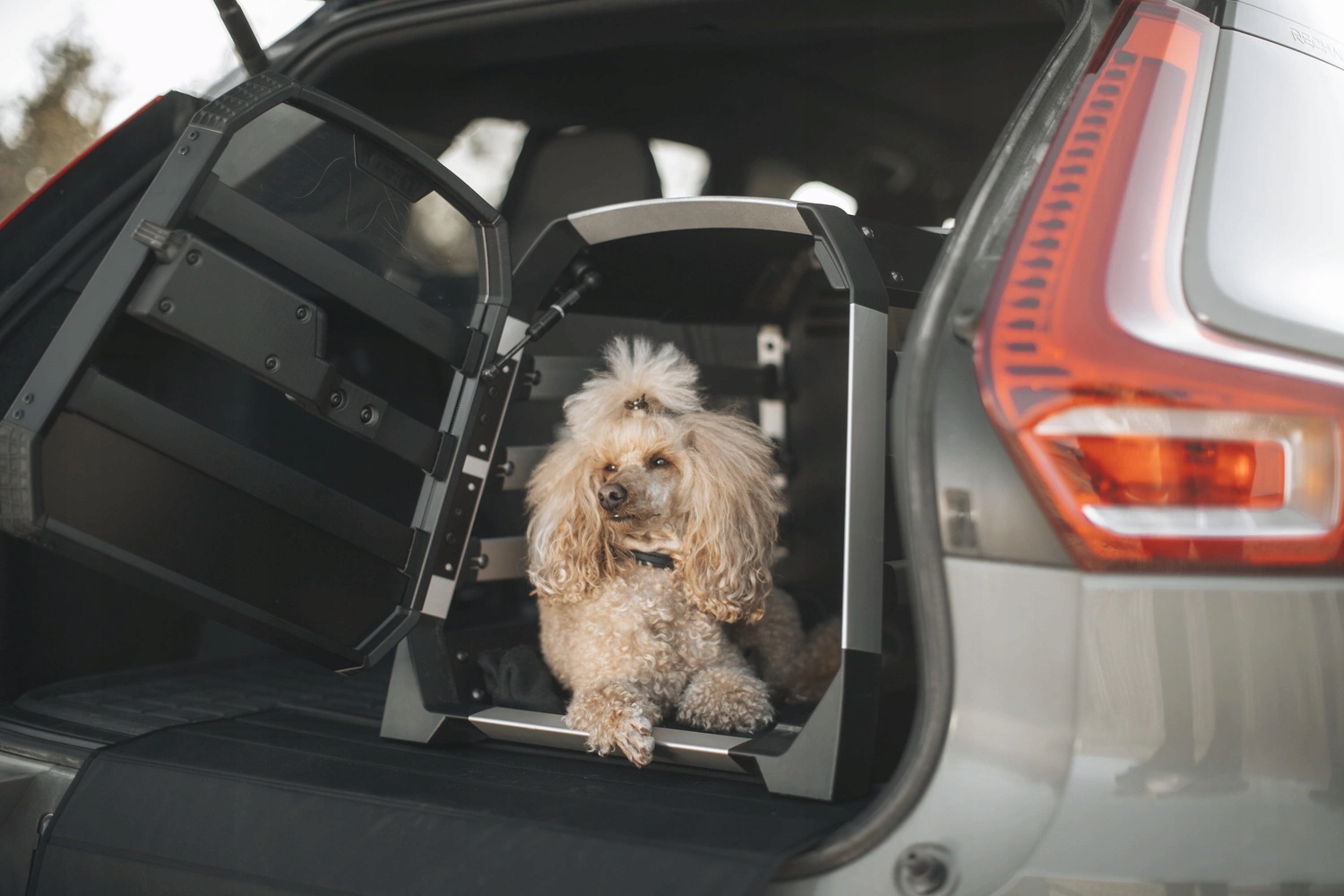 Клетка для перевозки собак доступна в десяти различных размерах. Все модели имеют закругленные края, что обеспечивает идеальную посадку как в автомобиле, так и в собаке. Более того, независимо от размера клетки, ее глубину можно отрегулировать так, чтобы она идеально вписывалась в багажник, а натяжные ремни обеспечивают безопасность во время езды. Хорошо спроектированная и качественно изготовленная клетка не создает шума и не отвлекает во время путешествия.