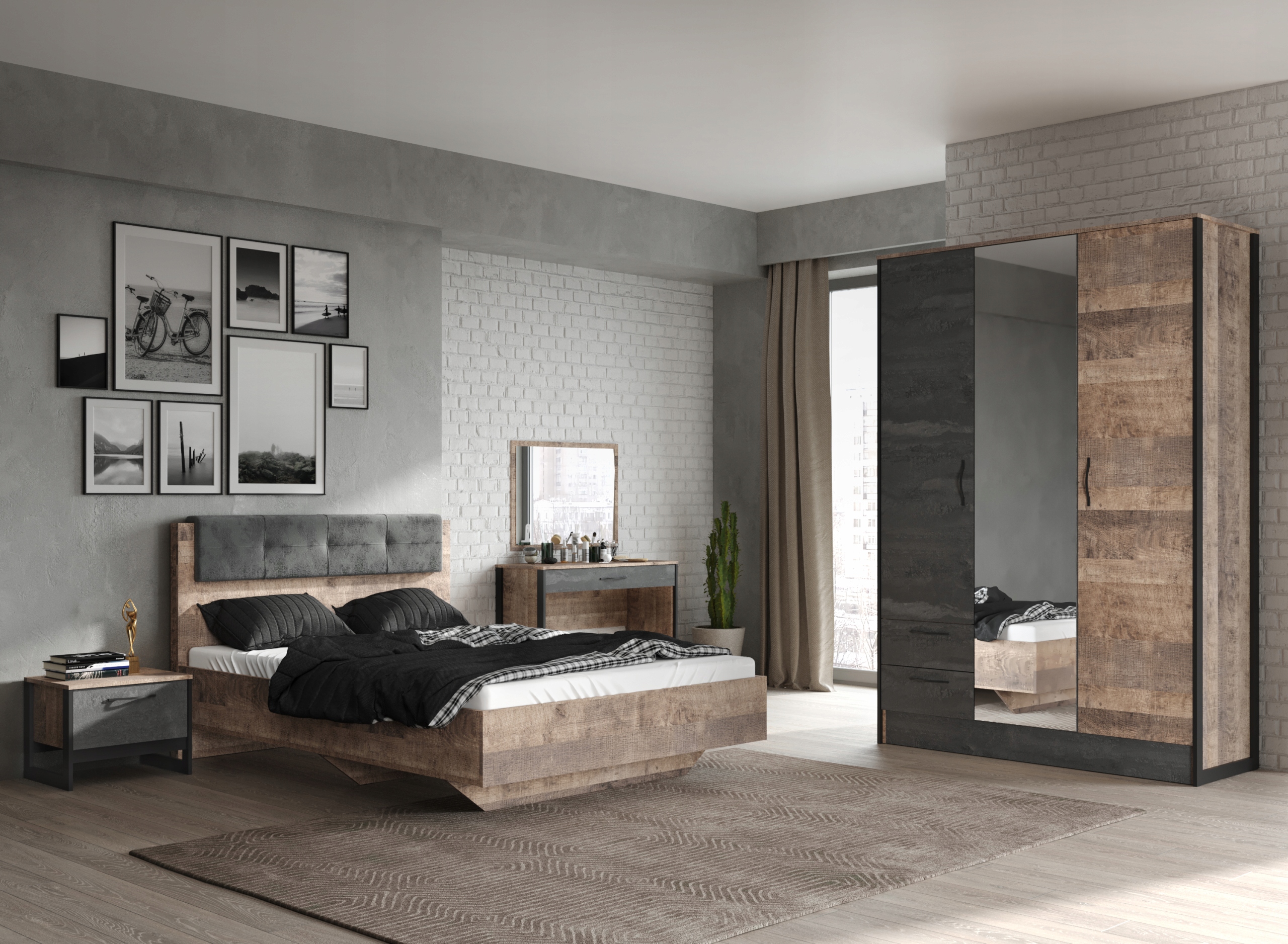 Трехвурные шкафы 3 двери Grange Oak/Dark Concrete Hugo Blancmeble