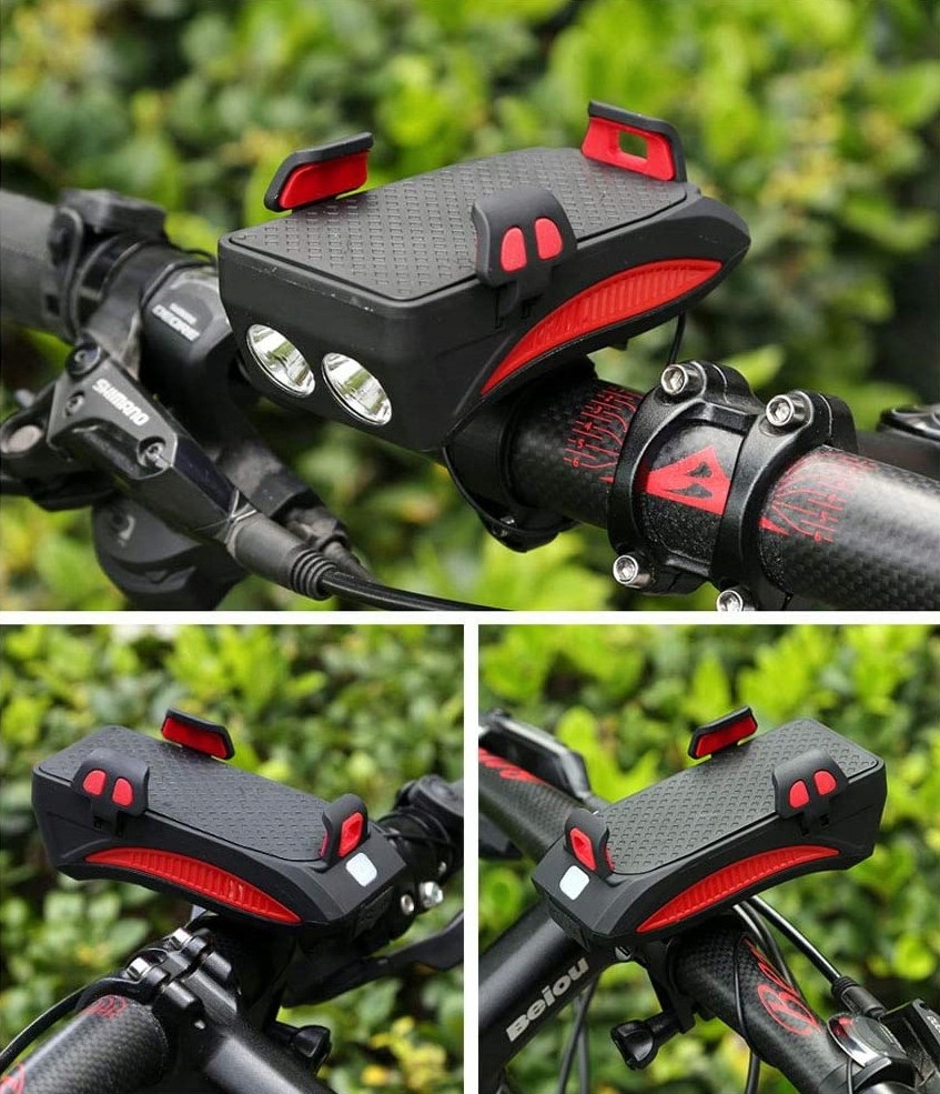 Вы ищете освещение, держатель для велосипедного телефона, аккумулятор и звонок? Вы только что нашли одно устройство, которое отвечает многим вашим потребностям! Представленный аксессуар имеет множество функций и к тому же выполнен из пластика высочайшего качества! Больше не нужно беспокоиться о своей безопасности и комфорте во время поездок на велосипеде.