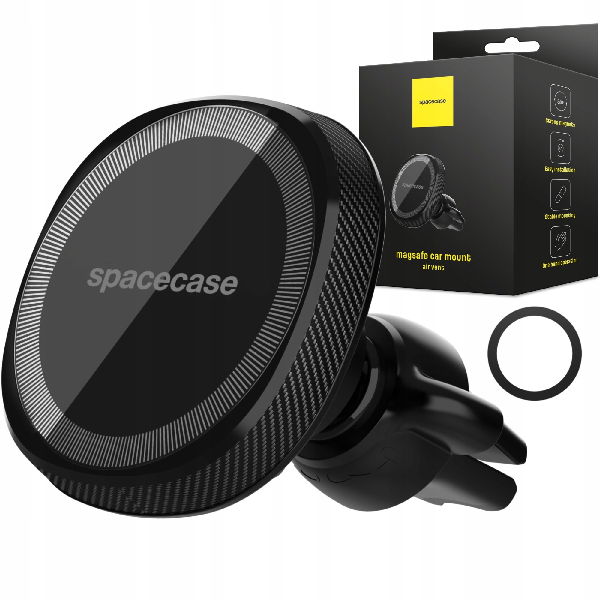 Современный и стильный Магнитный держатель Spacecase из коллекции совместимый с функцией MagSafe. Имеет сильный магнит и крепежный элемент для воздухоотводчика с вращающейся головкой. В комплект входит круглая пластина, посвященная MagSafe, благодаря которой держатель можно использовать на любом телефоне!