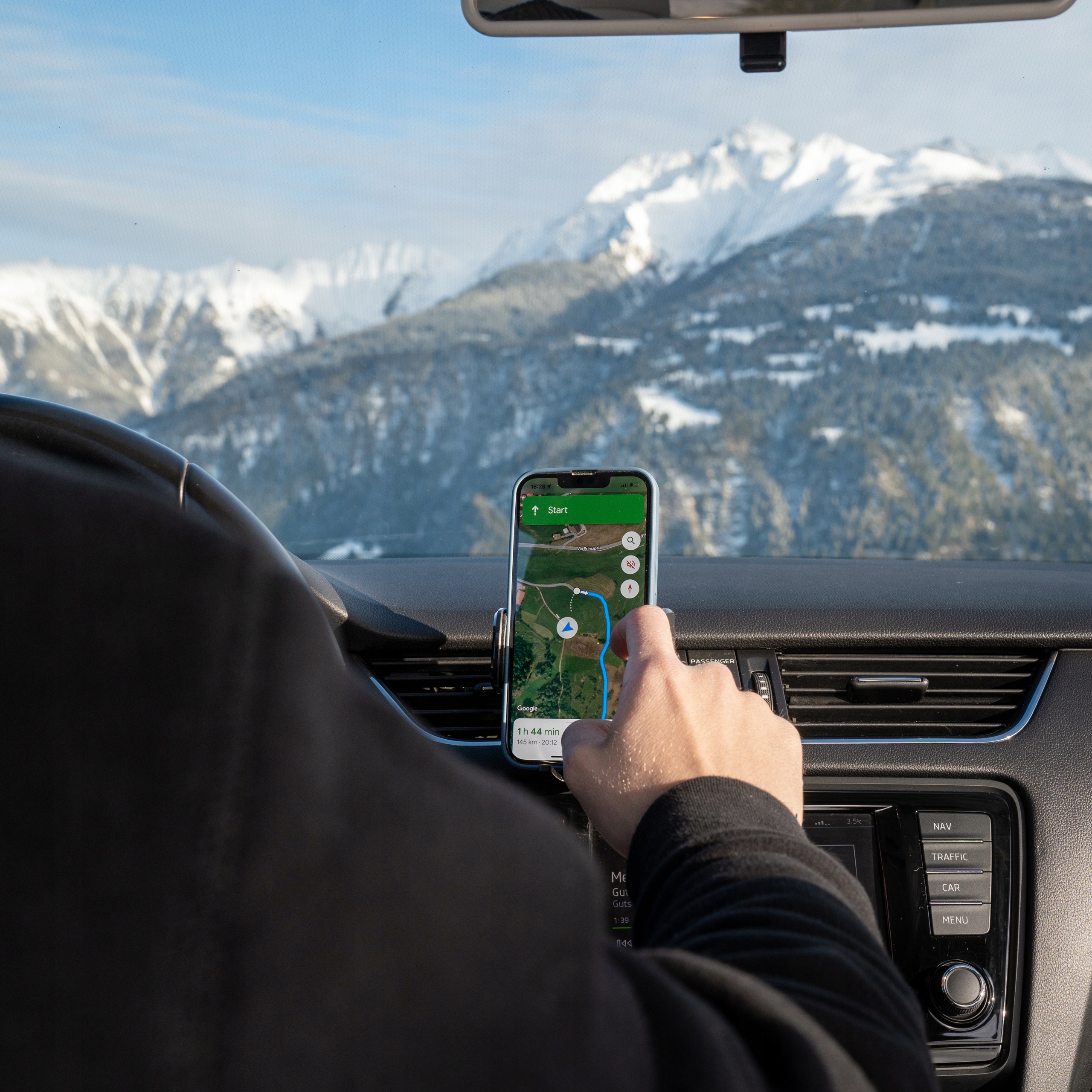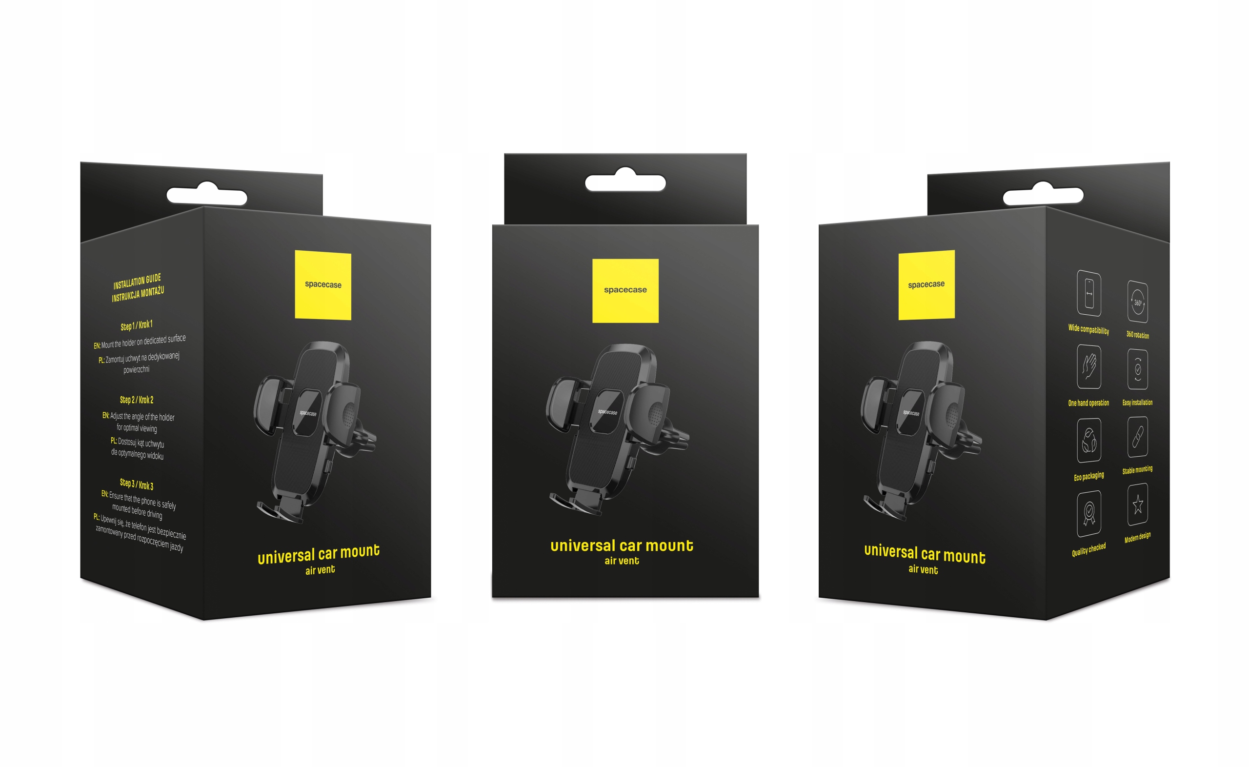 Надежный и удобный держатель для вентиляционного отверстия Spacecase. У него автоматически выдвигающиеся руки и вращающаяся голова. Он позволяет расположить телефон в очень удобном положении, оптимальном для вождения.