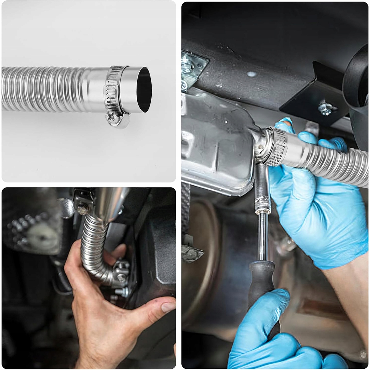 🚙🚙【 Легкая установка】 Подключите выхлопную трубу из нержавеющей стали нового автомобиля и прикрепите оба конца выхлопной трубы зажимами.