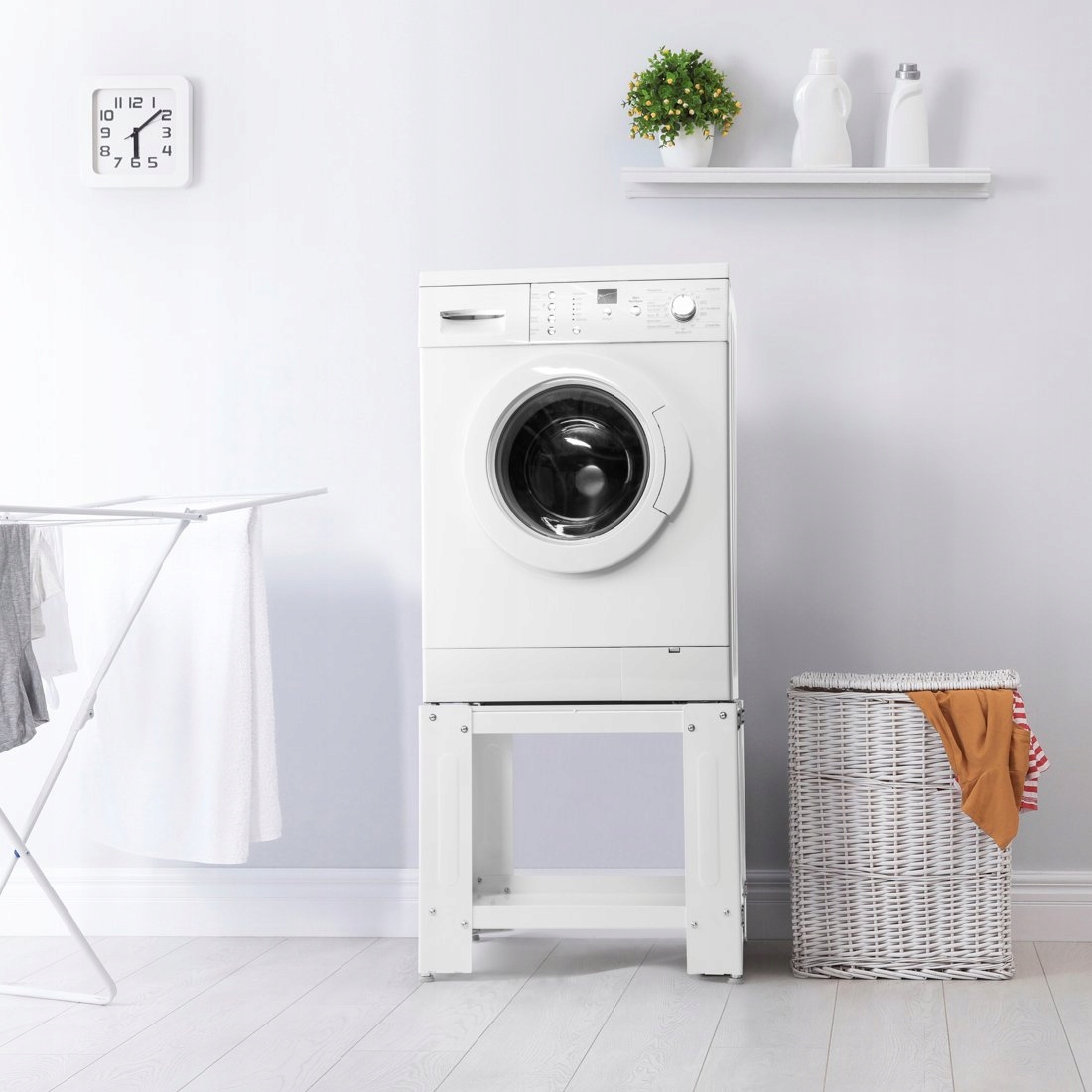 Основание для стиральной и сушильной машины поднимает устройства на высоту 50 см, что позволяет удобно загружать и выгружать белье без необходимости наклониться. Это идеальное решение для людей, которые заботятся о здоровье позвоночника.