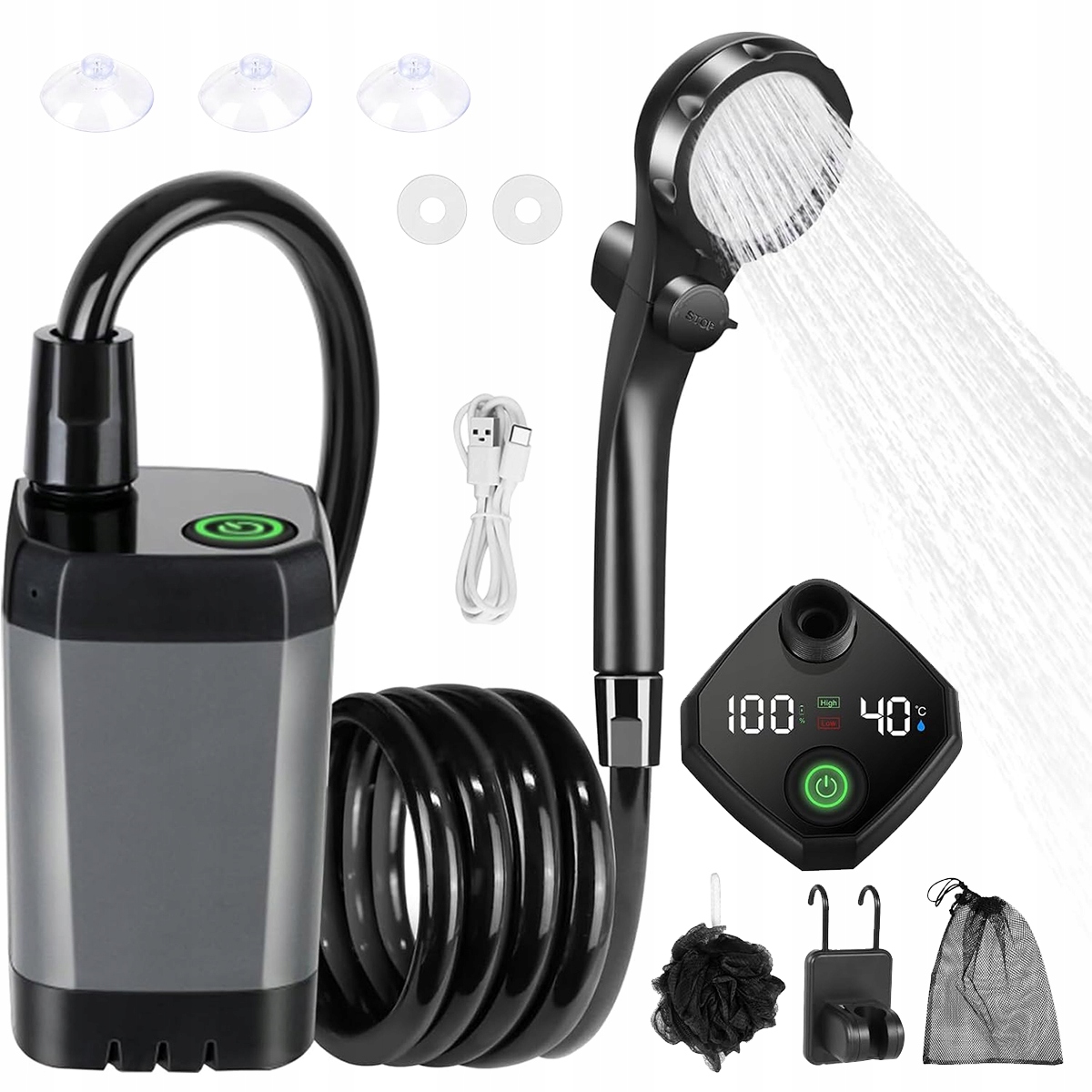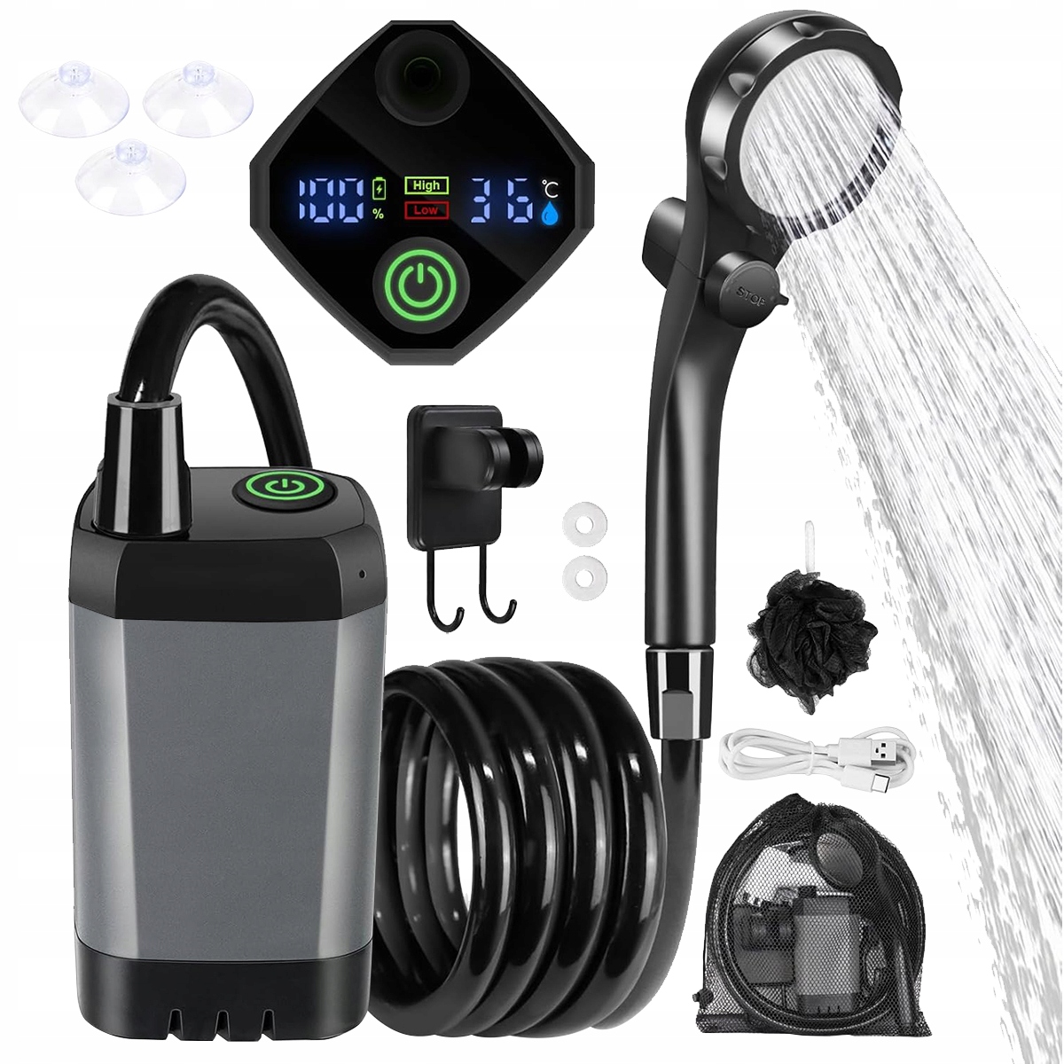 ��� �� не следует использовать одновременно с нагревателем! Оснащенный светодиодным дисплеем, он может показать температуру воды и реальную питание, помогая лучше понять температуру и уровень мощности, убедитесь, что вы можете насладиться душем с умеренной температурой воды и отслеживают потребление энергии на насос для душа в лагере. Насос для кемпинга водонепроницаемый с классом IPX7, вы можете поместить все тело в воду, а порт зарядки оснащен водонепроницаемой насадкой, которая безопасна для использования. Конструкция всасывающей чашки в нижней части насоса для душа гарантирует, что насос для душа сильно прикреплен к нижней части ведра и предотвращает его отмену.