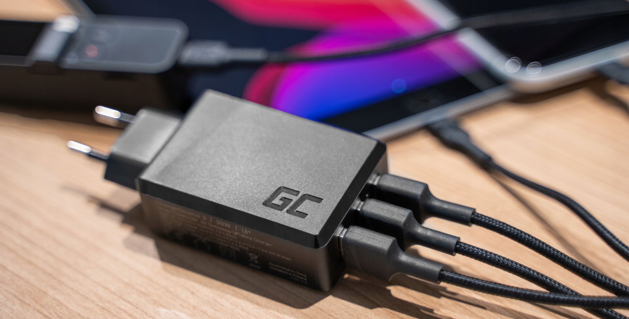 - Сетевое зарядное устройство GC ChargeSource3, оснащенное 3-мя быстрыми USB-портами, общей мощностью 30 Вт - современное зарядное устройство для всех устройств, оснащенных портами USB.