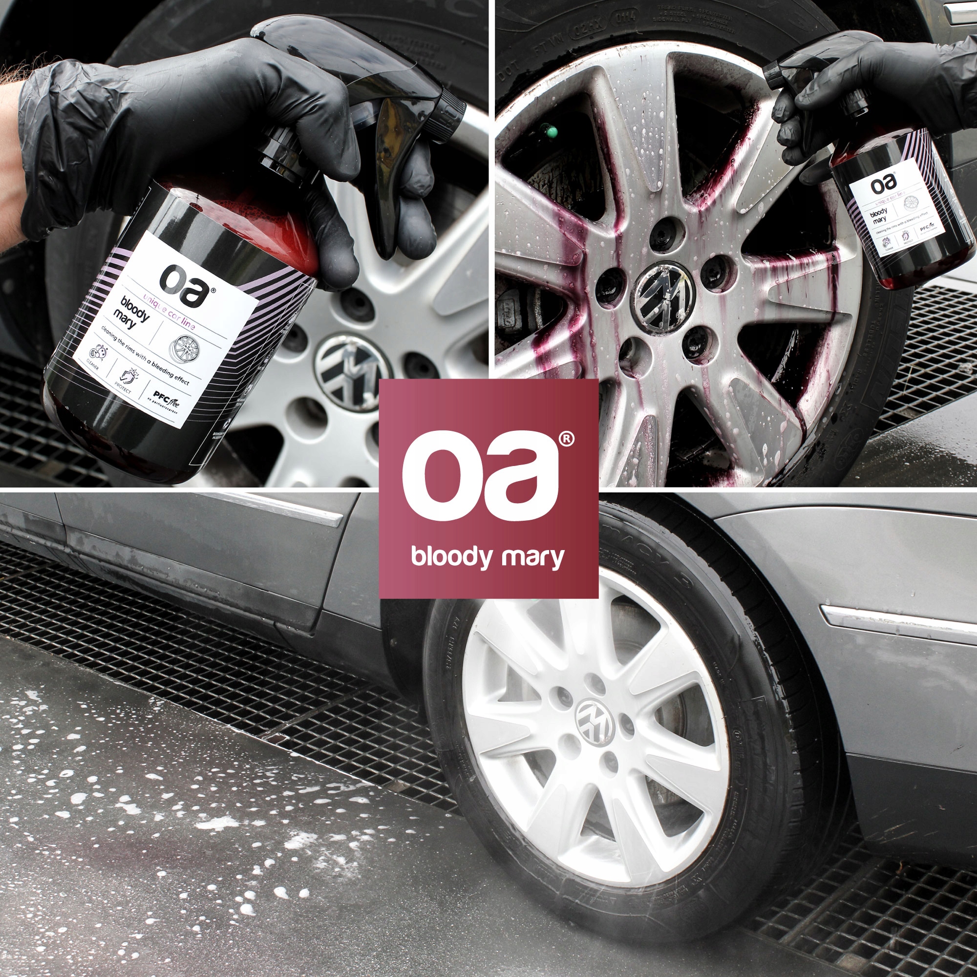 6. Познакомьтесь с профессиональным средством для тщательной очистки всех типов дисков и колпаков. OA CAR BLOODY MARY прекрасно справится со всеми металлическими примесями и может безопасно использоваться на автомобильных красках. Препарат через 2 минуты обеспечивает немедленный эффект очистки без необходимости очистки. Возвращает первоначальный блеск дискам, не оставляя разводов и разводов. OA CAR BLOODY MARY, благодаря своей гелевой консистенции, дольше остается на очищенной поверхности, благодаря чему загрязнения более эффективно растворяются в результате химической реакции, в результате чего появляется характерный красно-фиолетовый цвет - кровоточащий ободок. Продукт также можно использовать для удаления ржавчины и пятен ржавчины с брусчатки и бетона. Его также можно использовать для очистки металлических элементов колес велосипедов и мотоциклов.