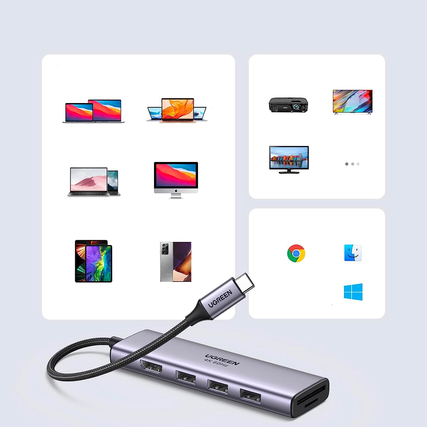 На вашем ноутбуке или компьютере недостаточно портов для использования. вы используете его во время повседневной работы или для развлечения? Вам не хватает дополнительных розеток разных стандартов? Если да, то гаджет Ugreen вам идеально подойдет. Одно устройство предоставит вам ряд дополнительных портов, которыми вы сможете пользоваться без проблем. Это позволит вам открыть для себя новые возможности вашего компьютера.