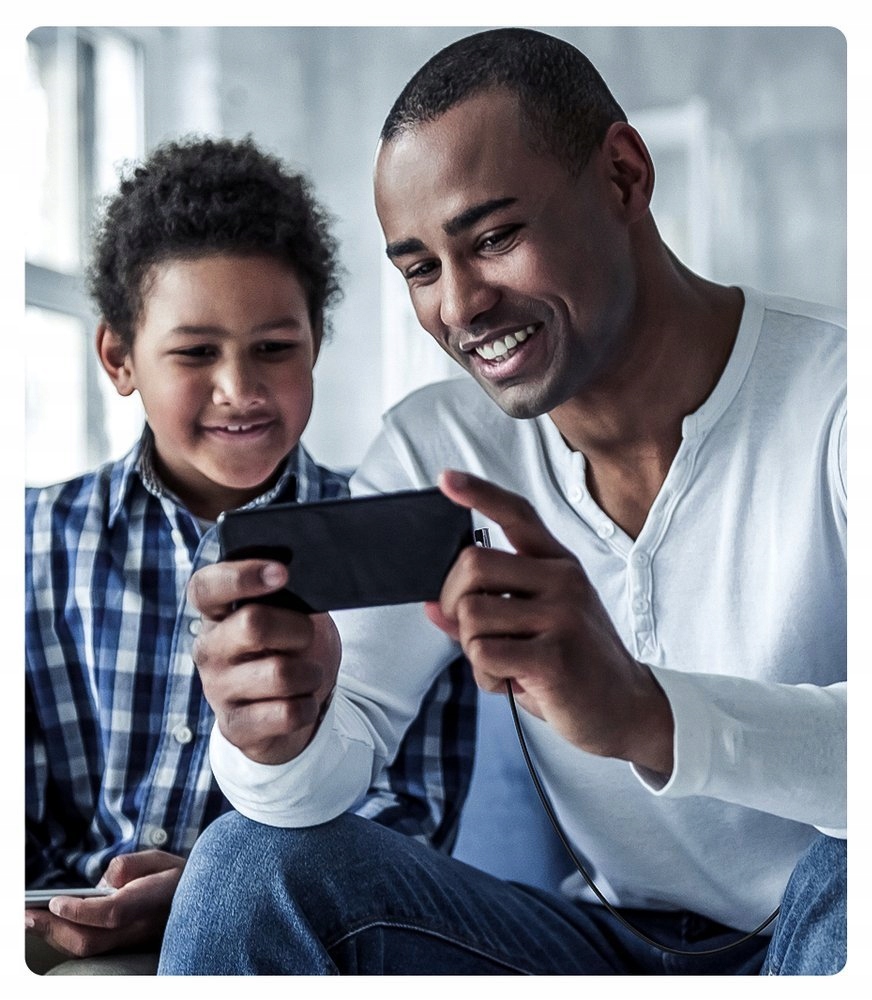 Угловой кабель USB/Lightning с сертификатом MFI (Сделано для iPhone), выдан от Apple только к проверенным и качественным аксессуарам. Его конструкция позволяет свободно и комфортно играть во время зарядки телефона. Вам больше не придется прекращать виртуальную борьбу только потому, что вашему устройству не хватает энергии.