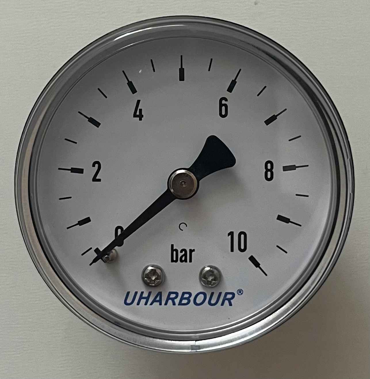 Объектом предложения является профессиональный датчик давления в Ухарбор, предназначенный для измерения давления воды и сжатого воздуха, с прозрачной шкалой 0–10 бар и твердым латунным соединением 1/4 дюйма BSP.
