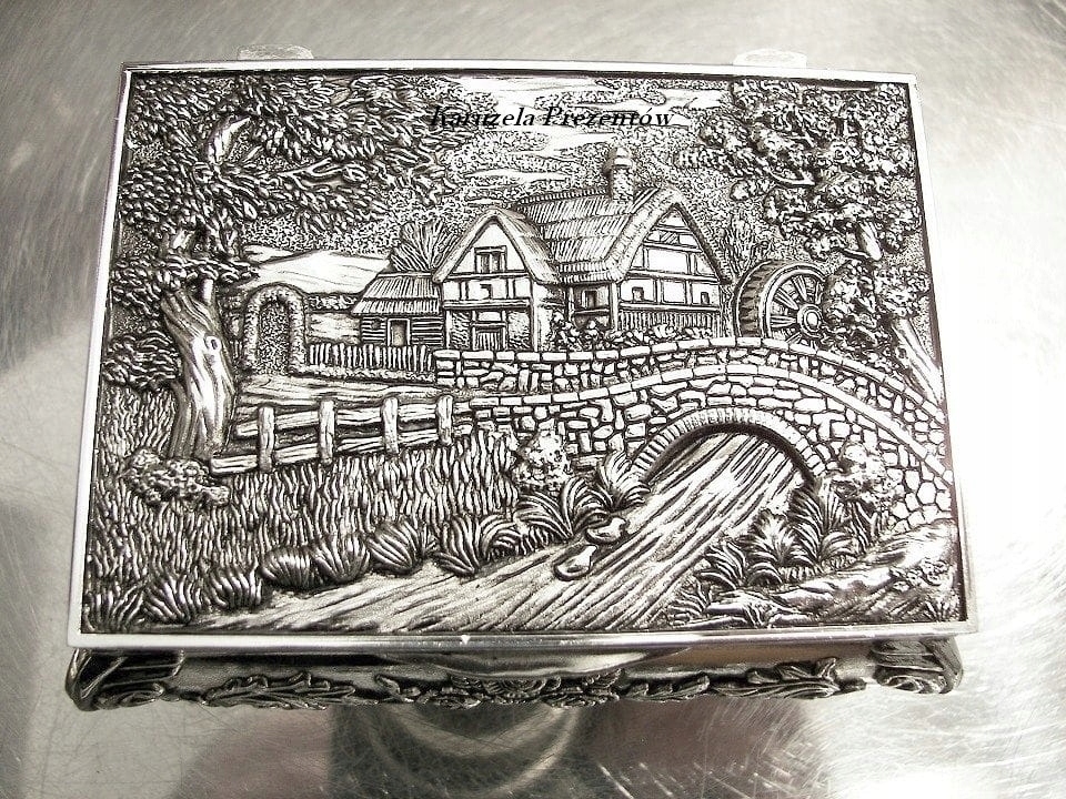 УНІКАЛЬНА ПОСРІБЛЕНА ПОДАРУНКОВА КОРОБКА З РЕЛЬЄФНИМ ВИДОМ НА КРИШЦІ