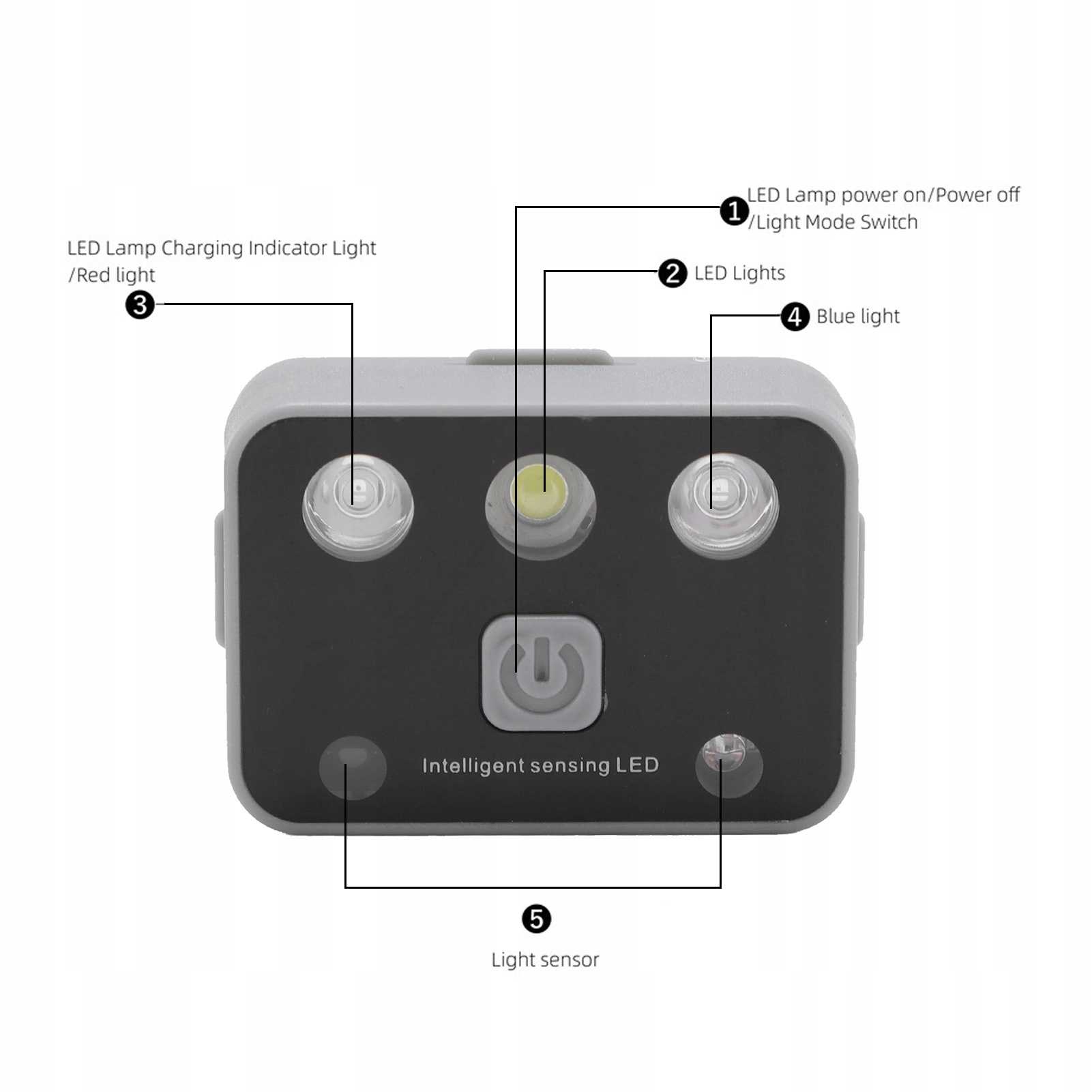 - Light modes: high white light, low white light, red and blue warning light, white light and red and blue warning light, intelligent detecting wave
