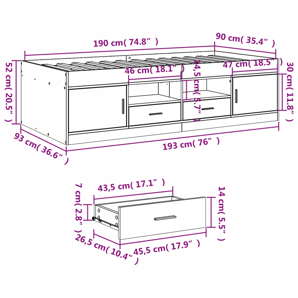 Универсальный диван с ящиками, Sonoma Oak, 193x93x52 см.