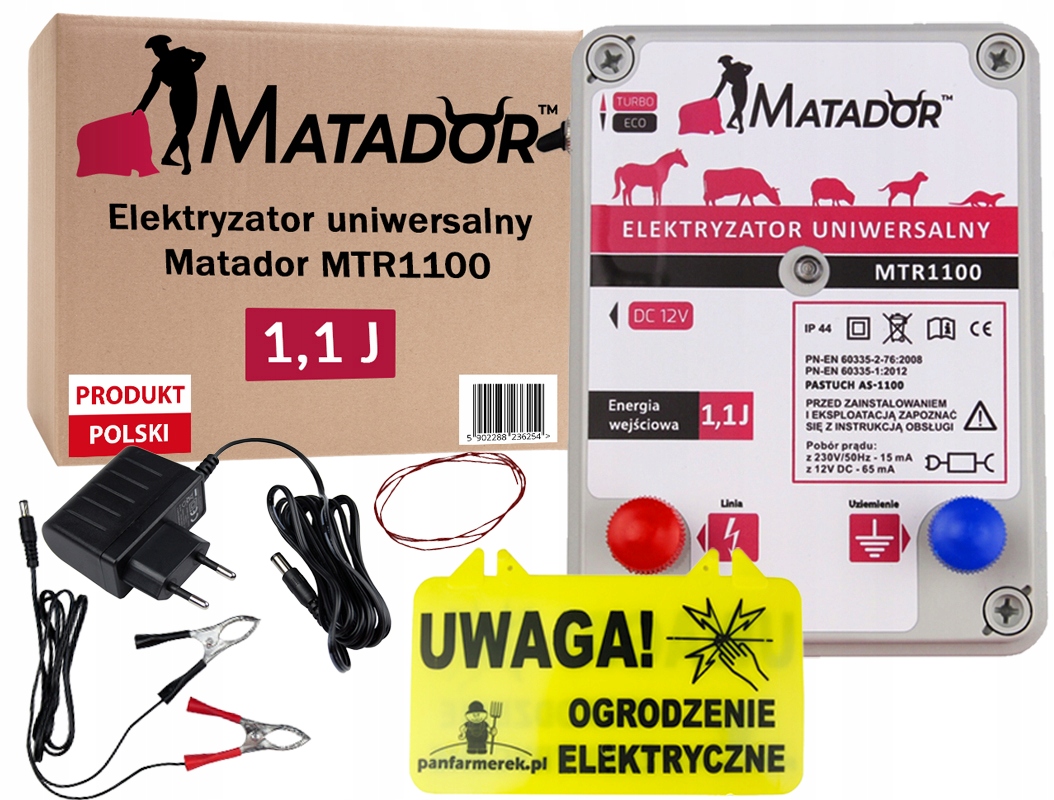 ✨ Универсальный электрификатор Matador MTR1100 1,1 Дж для молочного скота, лошадей, овец, коз и собак
