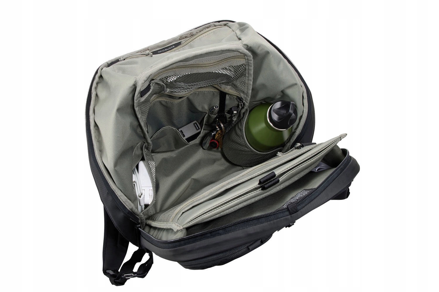 - Содержание безопасно в основной камере благодаря скрытым замкам, отверстию, направленное назад и флип -флоп с защелкой, которая закрывается для дополнительной безопасности, скрываясь Замок