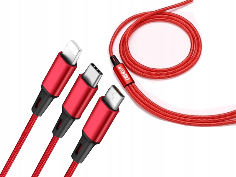 USB - USB type C / microUSB / Lightning Webski кабель 1,2 м червоний
