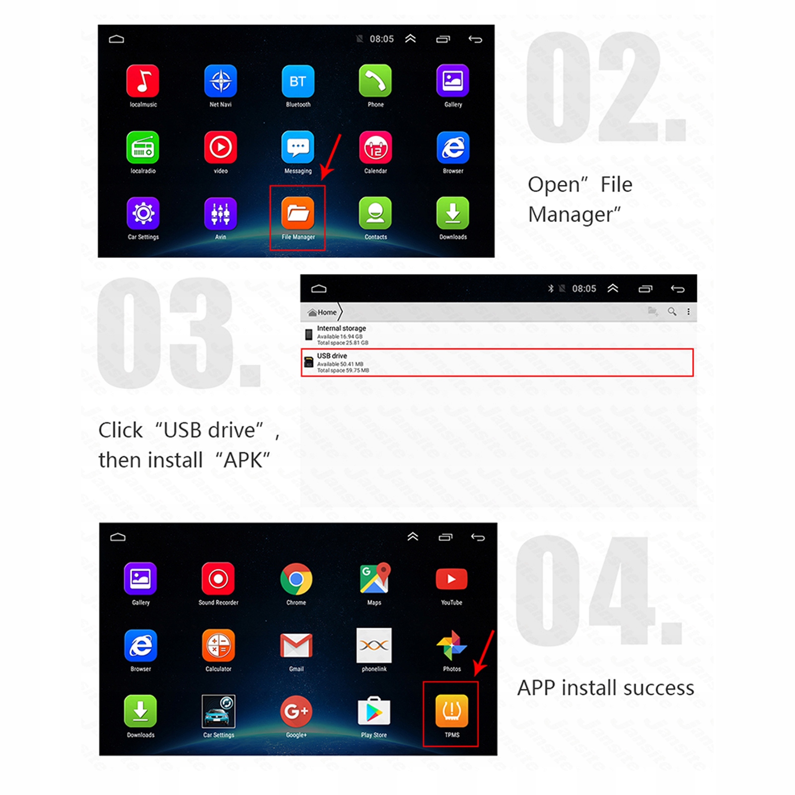 Спецификация: эта система управления напряжением беспроводной шины поставляется с 4 внешними датчиками и цифровым монитором для мониторинга напряжения и температуры 24-часовой шины автомобиля каждый день. Приемник TPMS может быть подключен к DVD Android Car с помощью USB -порта.