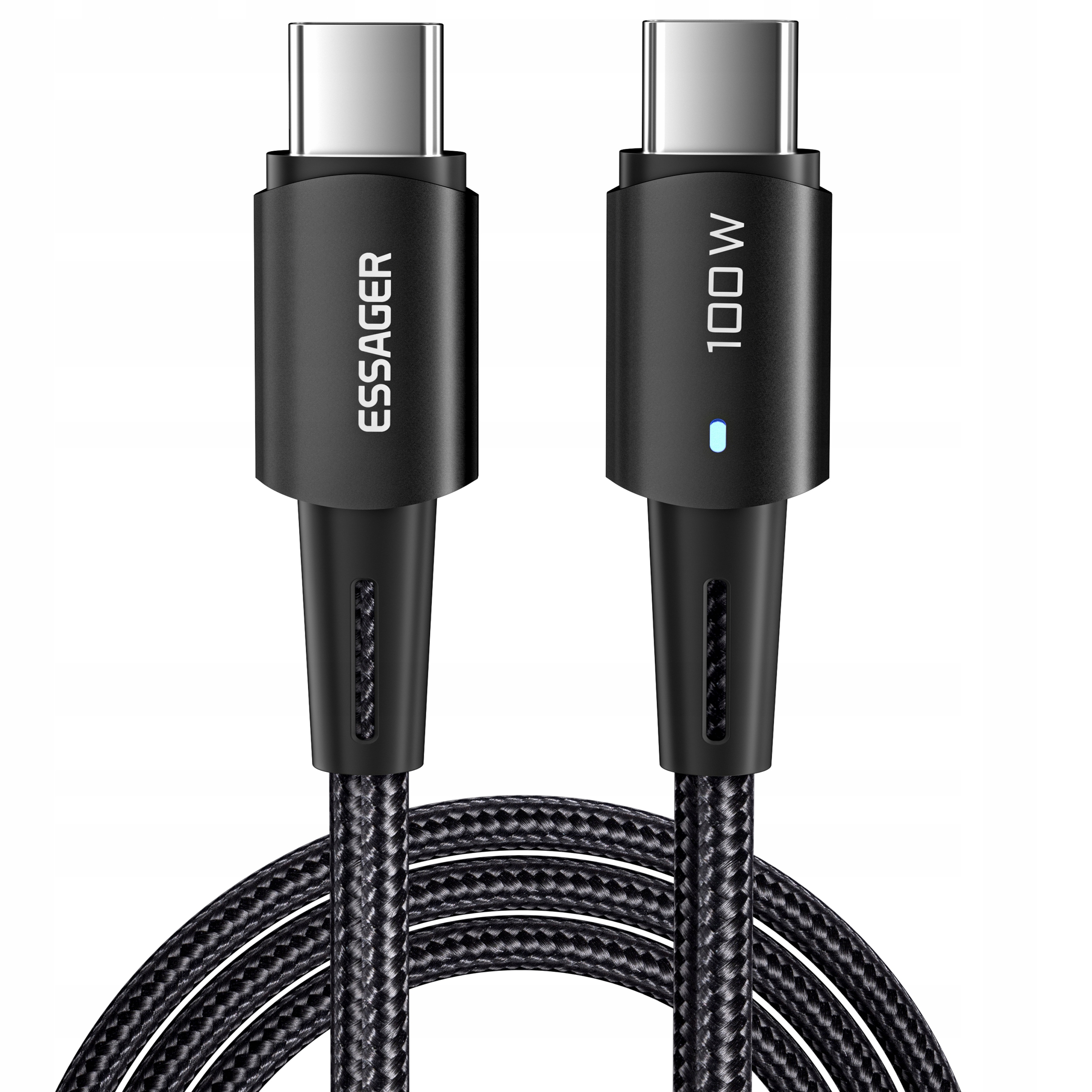 НЕВЕРОЯТНО ПРОЧНЫЙ КАБЕЛЬ USB C — USB C PD 5,0 А, 100 Вт ОТ ESSAGER® — ДЛИНА 1 М, ЧЕРНЫЙ ЦВЕТ — QUALCOMM QuickCharge 4.0