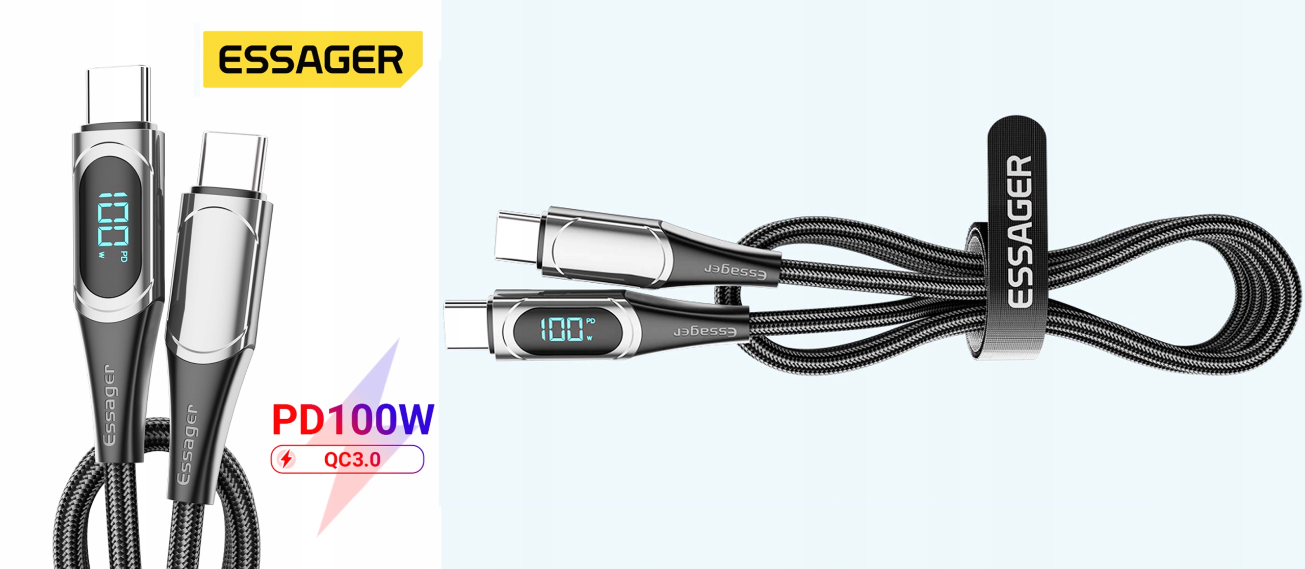 - Кабель ESSAGER PD также можно использовать для заряжайте ноутбуки, оснащенные портом USB TYPE C.