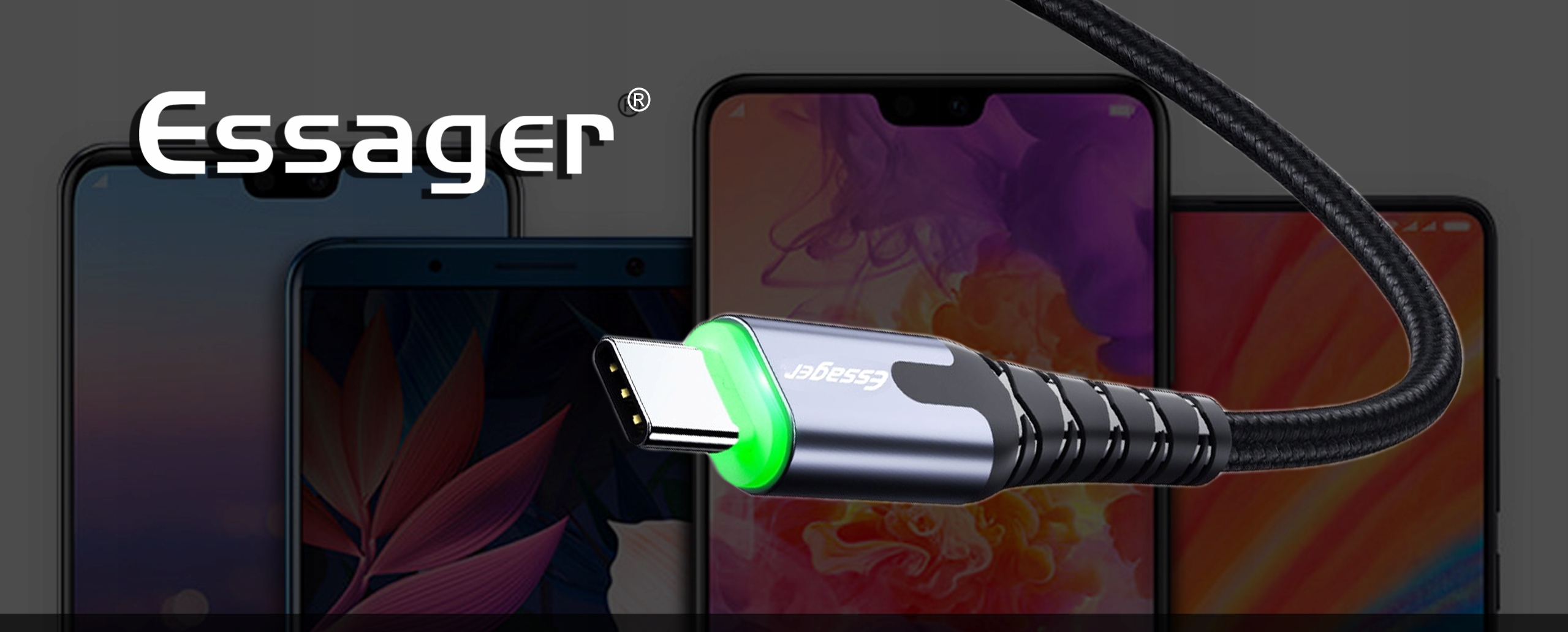 ОРИГИНАЛЬНЫЙ КАБЕЛЬ USB-C ESSAGER® С ЗАРЯДКОЙ ДО 3 А И ВСТРОЕННЫМ СВЕТОДИОДОМ!